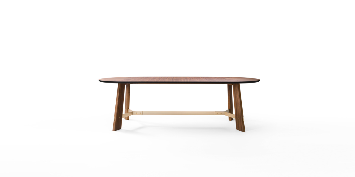 walnut or with Ash moka veneer. Matt gold finishing metal base.