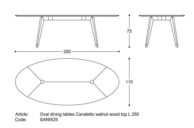 Dining table with supporting structure in Canaletto walnut solid wood and top in MDF with Canaletto walnut veneer.