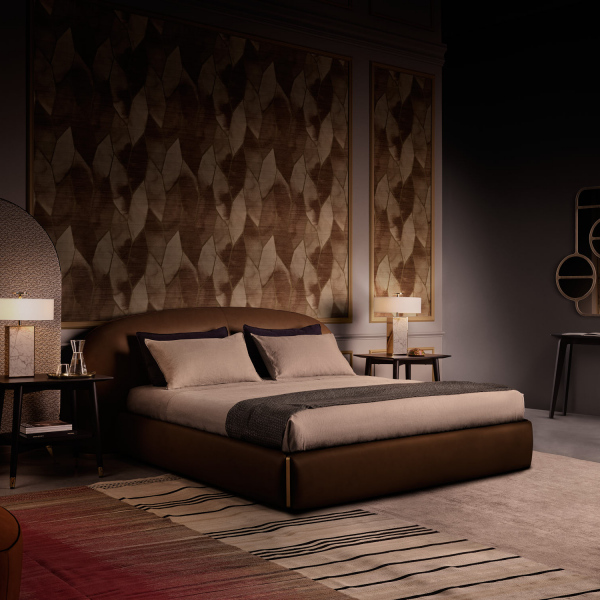 polyurethane, upholstered in fabric. Metal frame in polished gold finishing.