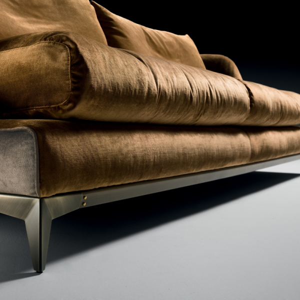 espanso a quote differenziate ad alta densità e memory foam. Cuscini schienale completamente in 100% piuma d’oca,