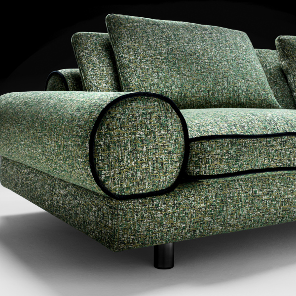 foam, upholstery in thermo-bonded fibre with stretch jersey. Seat cushions in 100% European, 10% down, channelled
