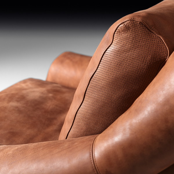 in both fabric and leather versions. Feet in metal matt dark bronze finishing.