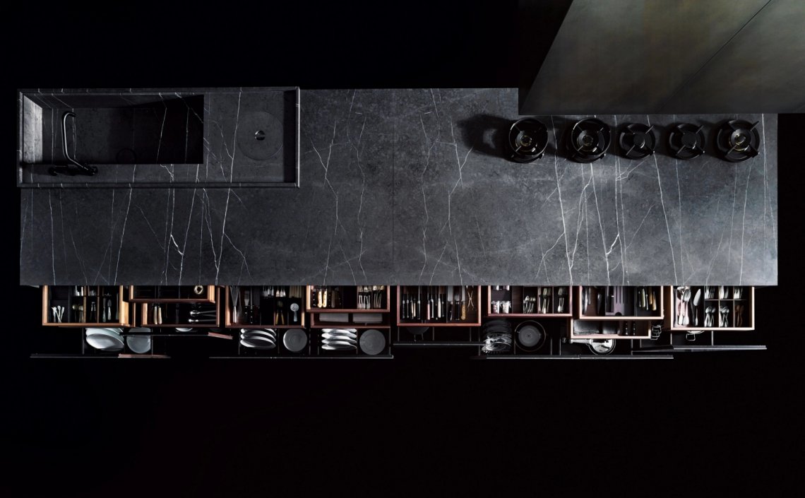 Boffi_code is not a model, is a proposal – a new way of offering Boffi systems, where customisation and made-to-measure go well beyond the expectations of even the most demanding customers. A kitchen programme, not a model, which is different from the Boffi standard proposals, offering extremely tailor made solutions for materials, finishes and cabinet typologies. Wide choice of wood finishes, metals and stones: exclusive woods extracted from the rivers with thousands of years of history; metals manually treated with special finishes; selected and unique natural stones. Worktops with customised sections, available in different material: Abonos Oak, Durinox? stainless steel, Corian? or solid wood.