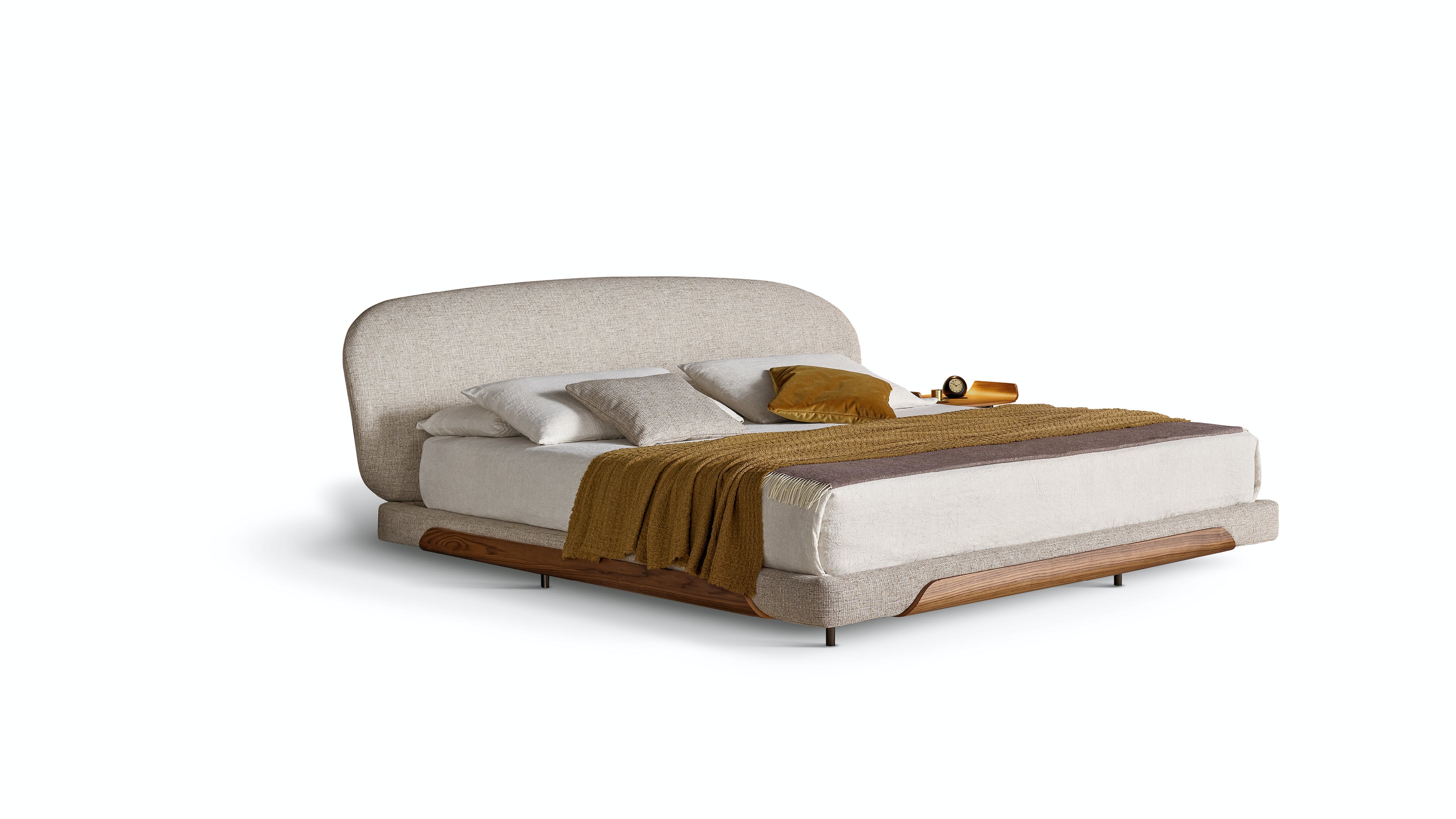 The contemporary bed from the Olos family, designed by Mauro Lipparini and inspired by Nordic design, represents a new and evolved stylistic vision, characterized by a universal modernity and the ability to gracefully interpret the “night” world. Indeed, thanks to a unique aesthetic sensitivity and considerable harmony of volumes, the Olos collection allows you to fully enjoy that intimate serenity that the bedroom requires. Contemporary elegance, purity of form and personality are the characteristics of this bed. The sober details of the curved wood represent the outer sections of the bed and their design extends into the elliptical, naturally enveloping headboard.