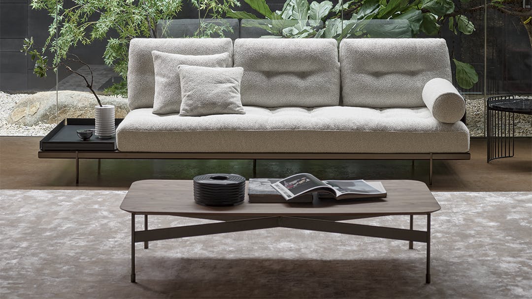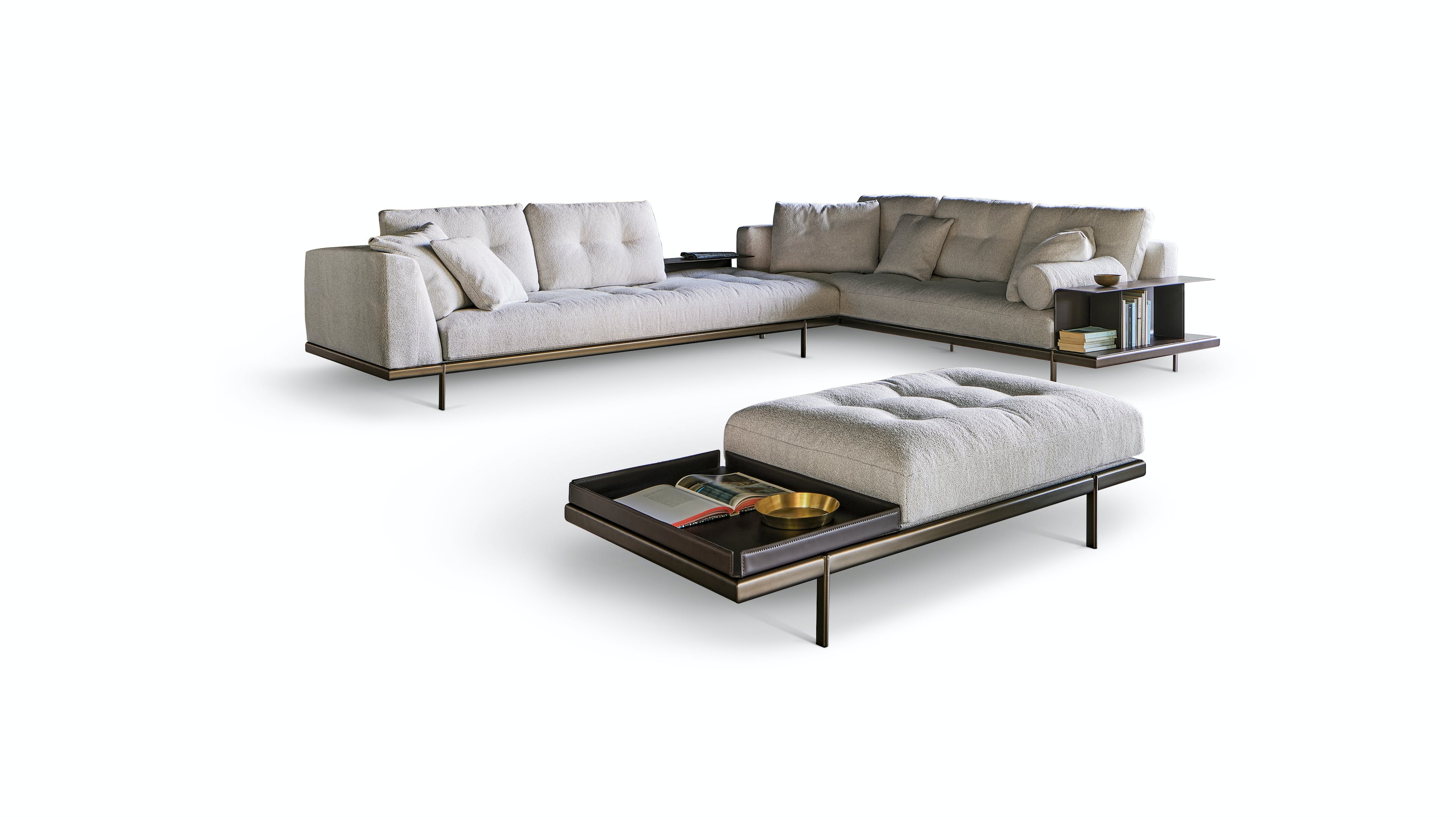 Characterized by refined aesthetics and an iconic character, the Maximilian seating system is capable of furnishing any living area with style. Not just a simple sofa set with tables, but a modular collection of elements that offer a variety of configuration possibilities, useful for designing the living area in both residential and contract settings. In addition to its generous upholstery, contrasting with the slender metal feet, the most striking feature of this sofa is the stitching on the upholstery that embellishes the backrest and seat, and which recalls the typical elegance of the 1950s. A series of leather accessories complete the Maximilian collection to achieve a perfect aesthetic and functional performance: among them, the armrest, the magazine holder armrest and a small table; they stand out as distinctive elements in a versatile, elegant and understated project. The extraordinarily wide range of elements, materials, and finishes is one of the most important added values of the entire Bonaldo collection; when it comes to the Maximilian sofa, this versatility represents a key element in fully satisfying different design requirements.