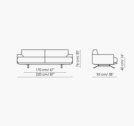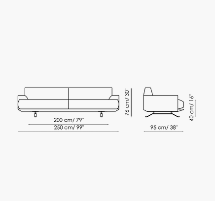 Rigorous linearity of shapes and softness of material coexist in Slab plus, a modern design sofa that can be perfectly included in the home with a balanced modernity and perfect for living areas with an innovative and contemporary spirit, to which it adapts with great flexibility thanks to the numerous elements contained in the collection. Not only aesthetic, but also comfort: the deep seating and the height of the backrest ensure excellent comfort and inspire total relaxation. The fully removable upholstery is available in fabric or leather; the original base in painted metal gives a suspended look and, resuming the squared lines of the padded body, ensures the visual consistency of the design.