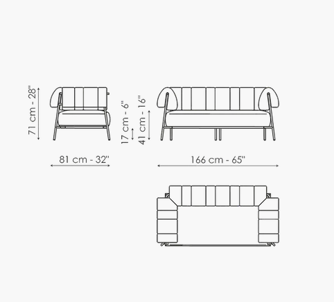 The Tirella sofa, an addition to the armchair collection, is an element with a retrò taste, inspired by the fabric samples that are laid atop a cutting table. A small modern sofa with a sophisticated silhouette in which the cushions, from simple “extras” take on the leading role, “embracing” the metal frame around the armrests and backrest. Thanks to its small size, the Tirella sofa is suitable not only for living spaces, but is also perfect for public environments and reception areas.