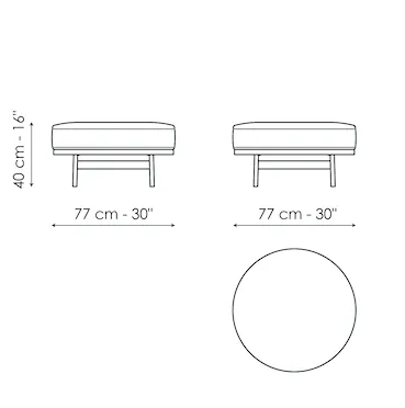 The Neuilly round pouf is available in two different sizes and is characterized by the immediately recognizable slender tubular metal frame which can be found in the other pieces of furniture in the Neuilly collection, together with the generous padding of the support. Visual elegance and purity of form are the stylistic features of this versatile and light-figured piece of furniture.