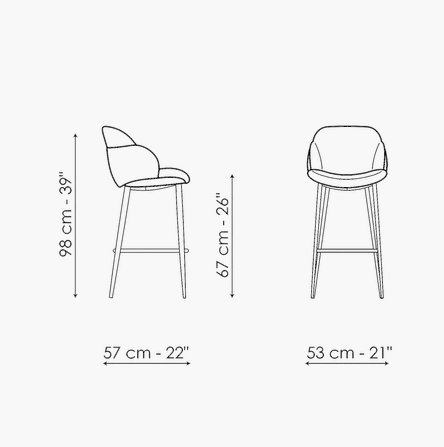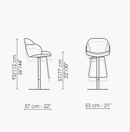 Softness and comfort are the main characteristics of the kitchen stool My way too. An element that catches the attention is the considerable padding of the body that wraps it in a precious shell. The My way too stool is available with fixed or swivel metal base while the seat and back are covered in fabric, eco-leather or leather. The variety of finishes available for the base and for the covering allows ample freedom of customization for a close dialogue with the surrounding environment.