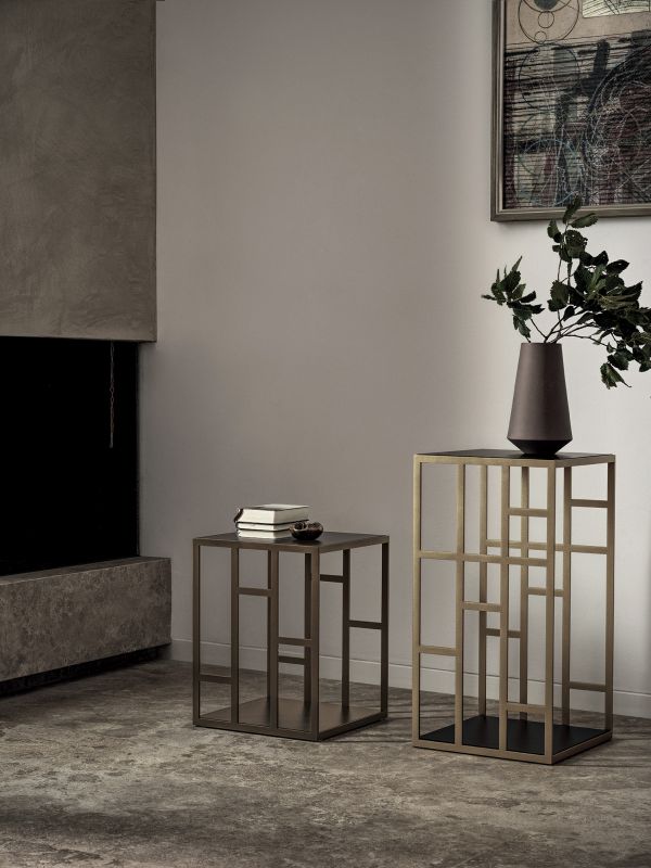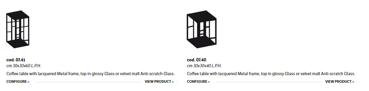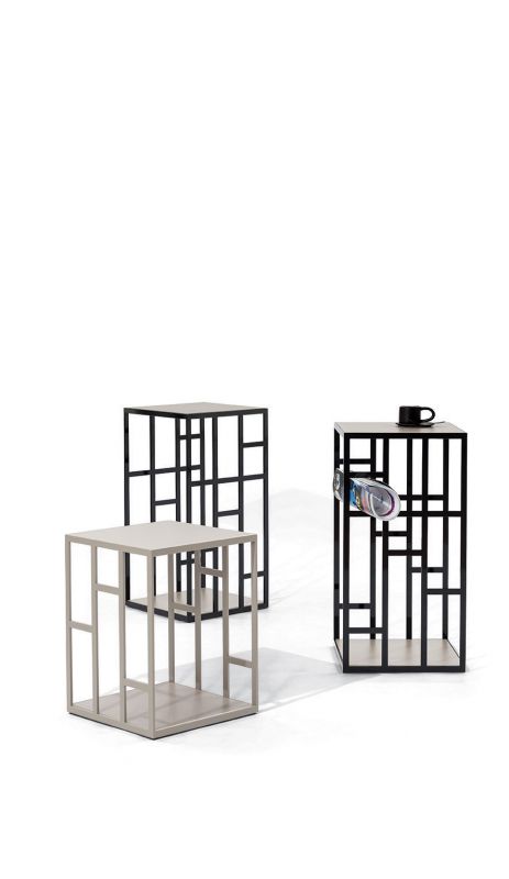 Coffee table with lacquered Metal frame, top in glossy Glass or velvet matt Anti-scratch Glass.