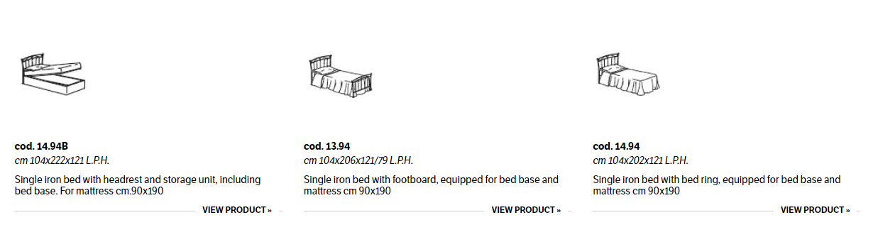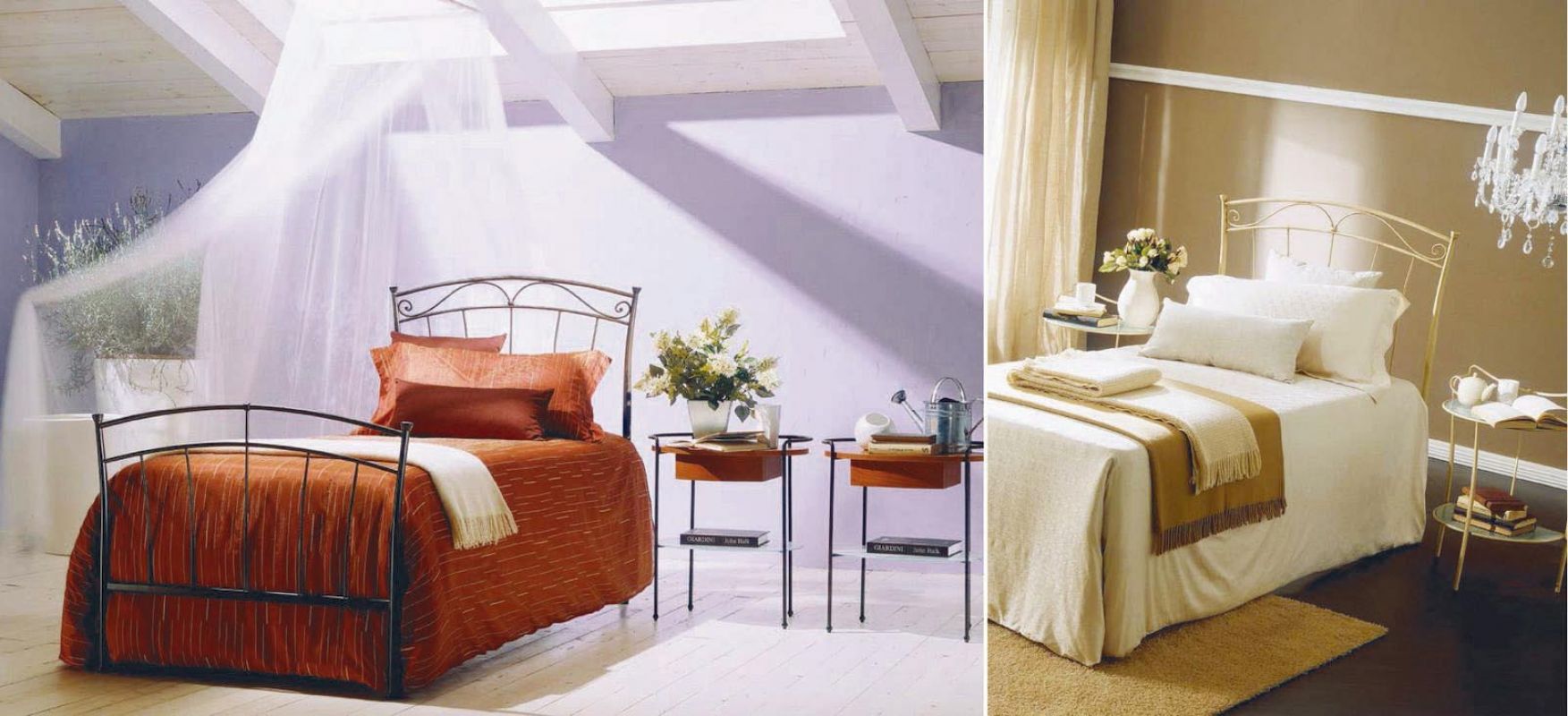Iron bed in lacquered or hand-coated metal frame, in single version, with foorboard, bed ring or storage unit.