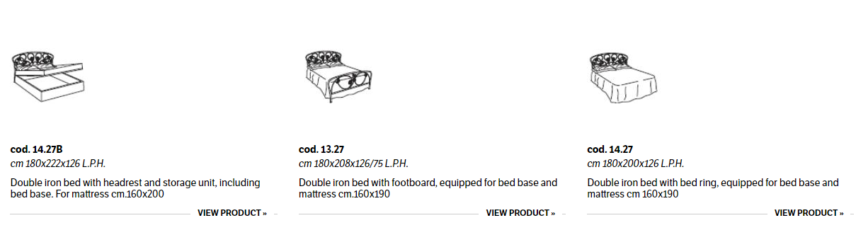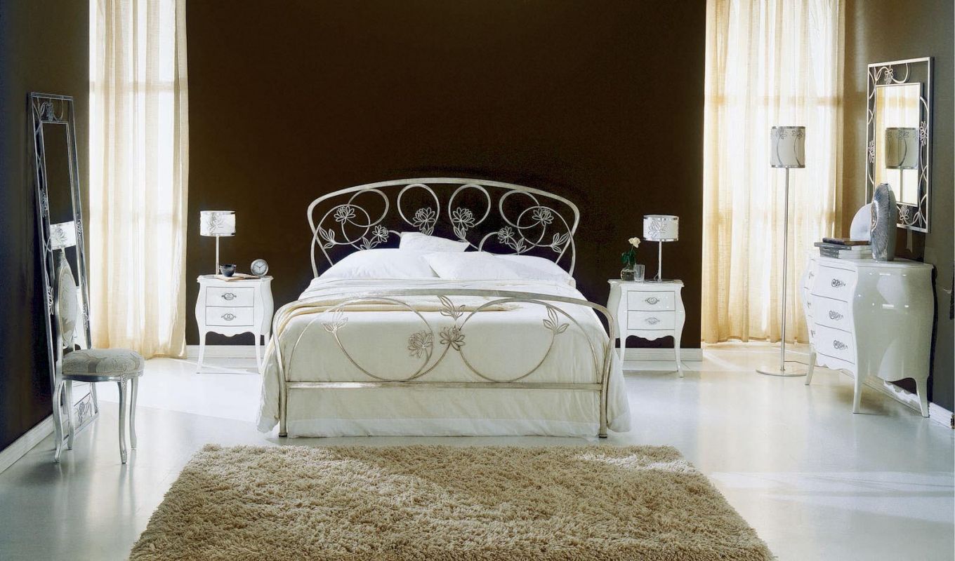 Iron bed in lacquered or hand-coated metal frame, in double version, with footboard, bed ring or storage unit.