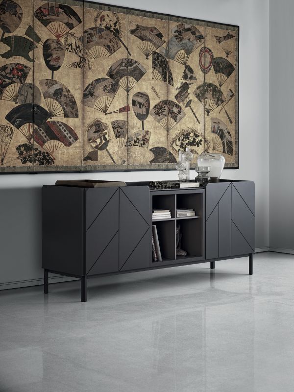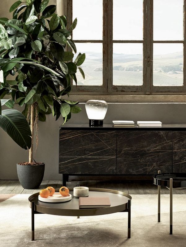 Table lamp floating glass white nuanced. Lacquered metal base.