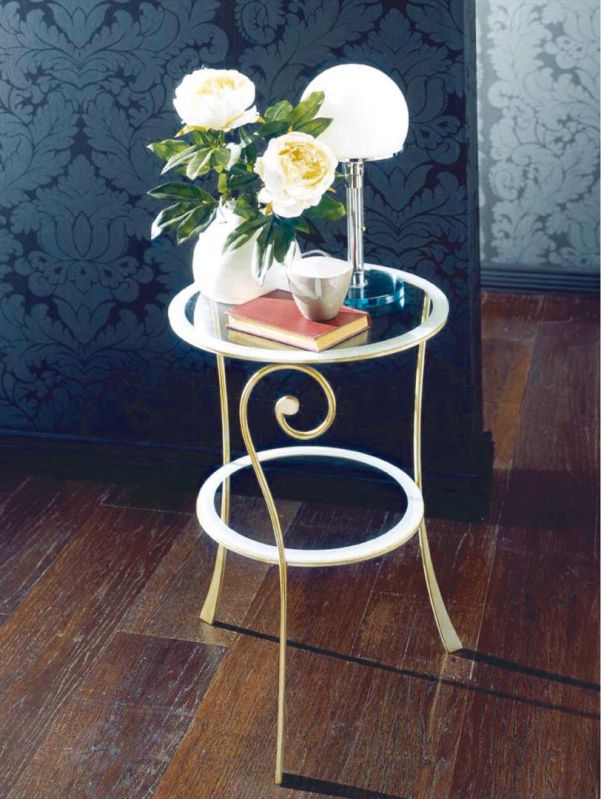 Iron bedside table with two transparent glass tops and sandblasted edge