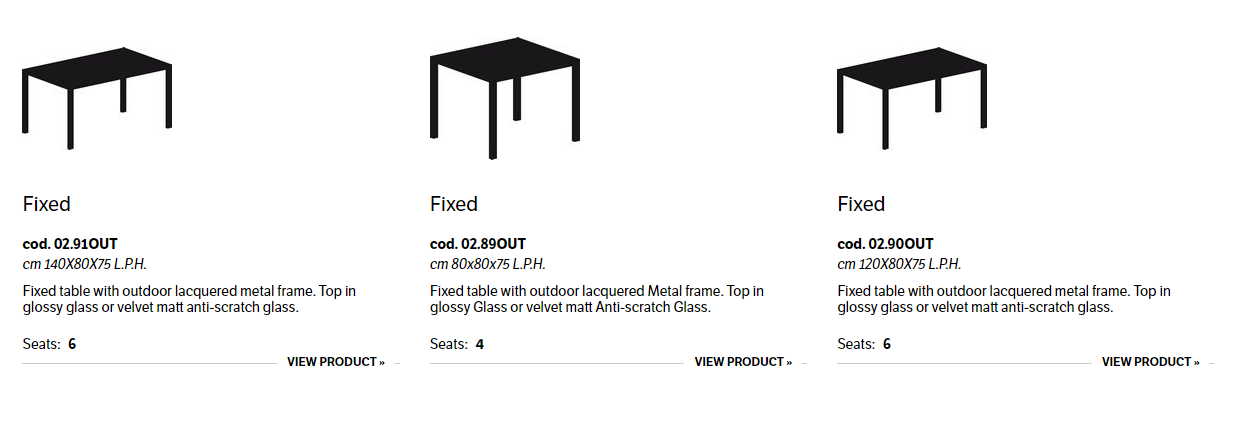 Fixed table with outdoor lacquered metal frame. Top in glossy glass or velvet matt anti-scratch glass.