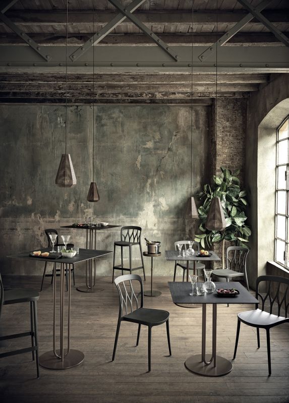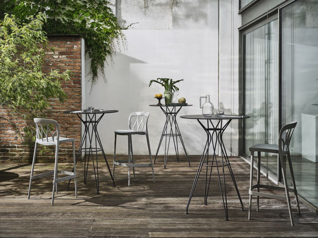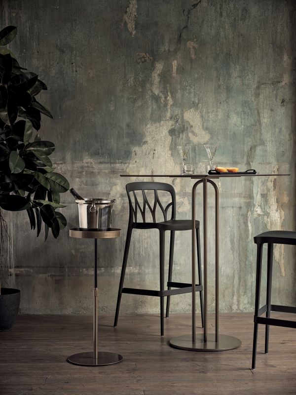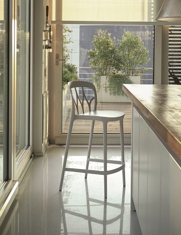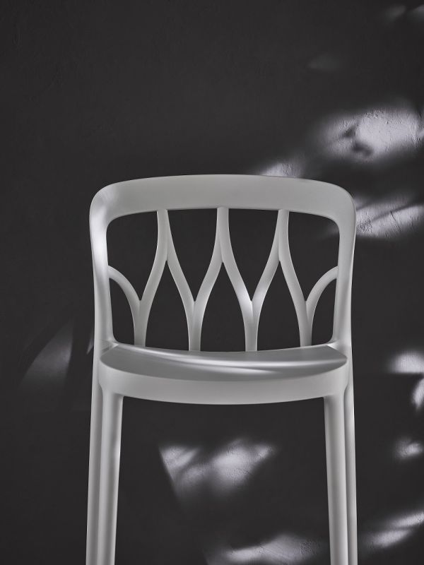 Stacking barstool in polypropylene and recyclable glass fibre.