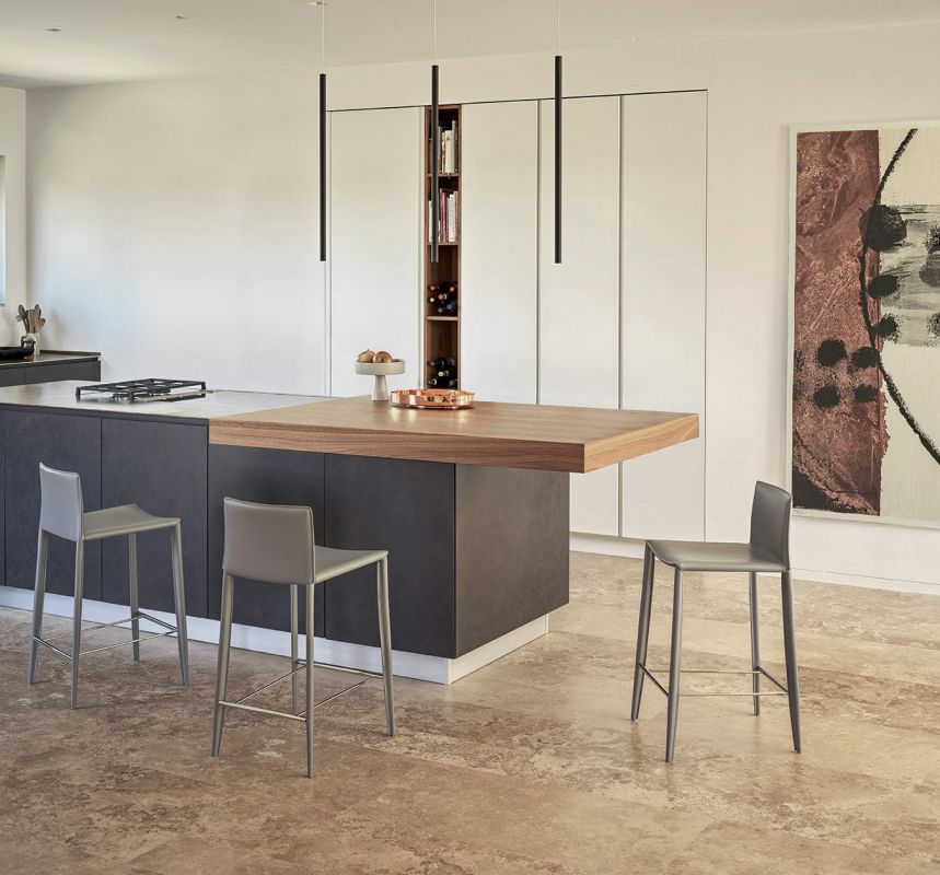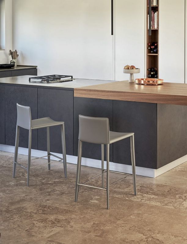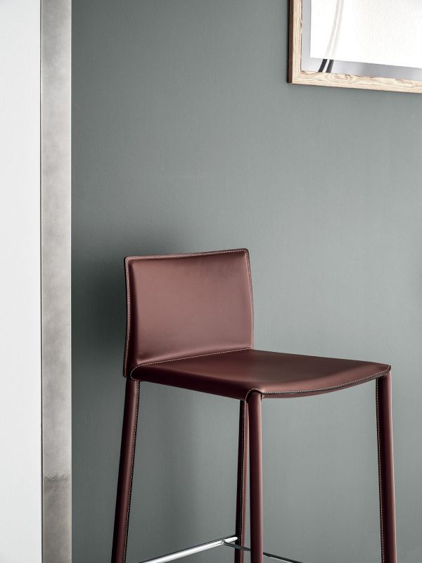 Barstool with metal frame, completely padded and upholstered.