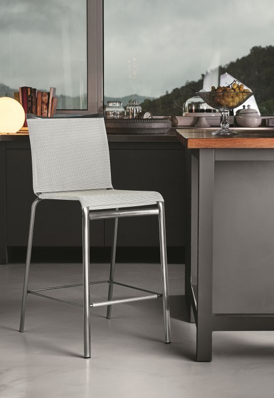 Barstool with lacquered or chrome Metal frame, seat and back in Texplast or Soft Texplast.