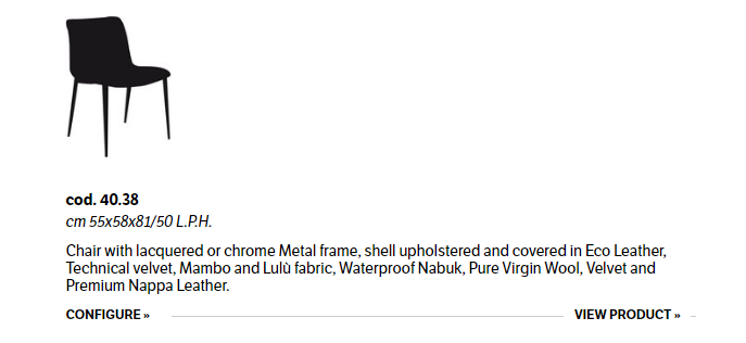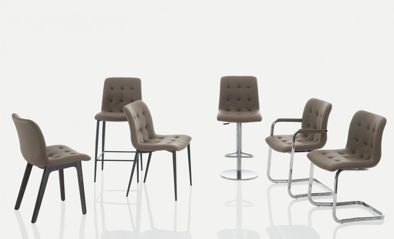 Chair with solid Wood or Metal frame. Shell upholstered and quilted.