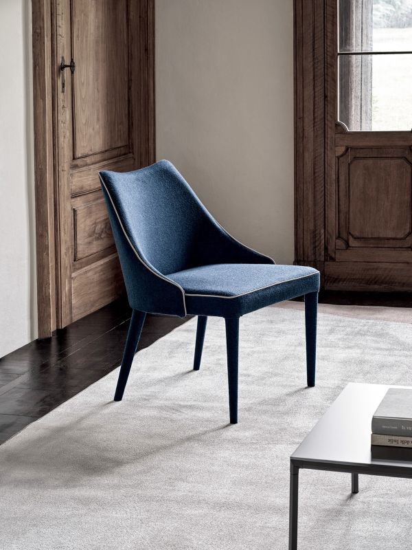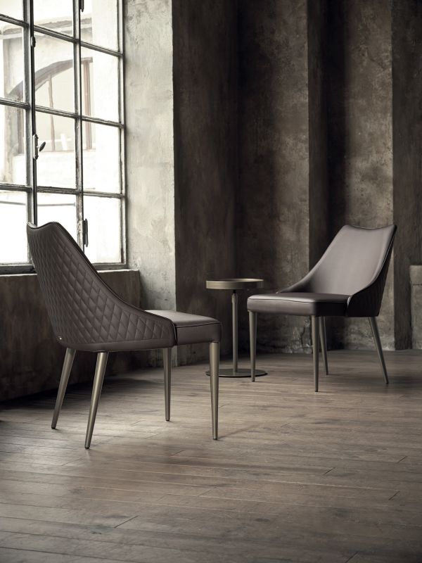 Armchair with Metal frame padded and upholstered. Piping can be in matching colour or contrast colour. Also available in the version with quilted backrest (only for Waterproof Nabuk, Eco leather and Premium nappa leather).