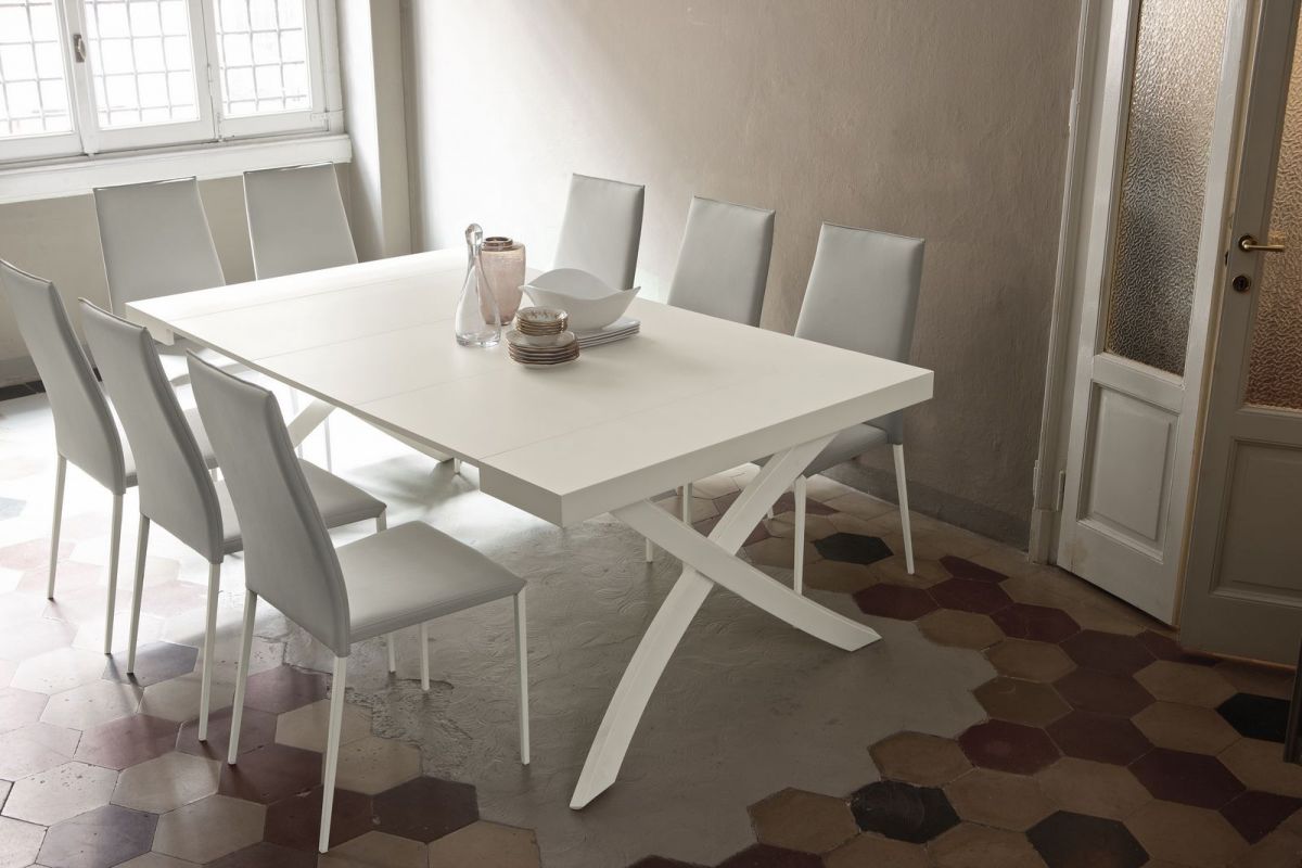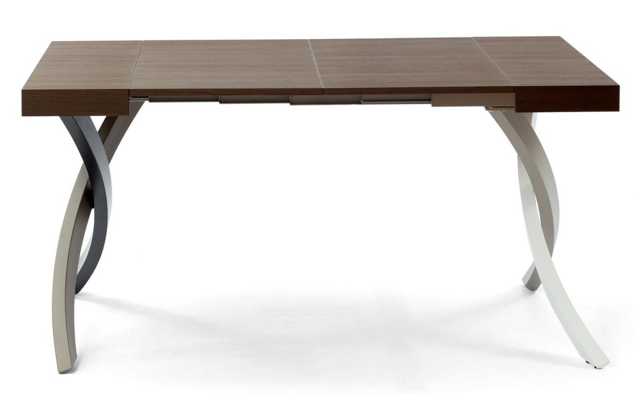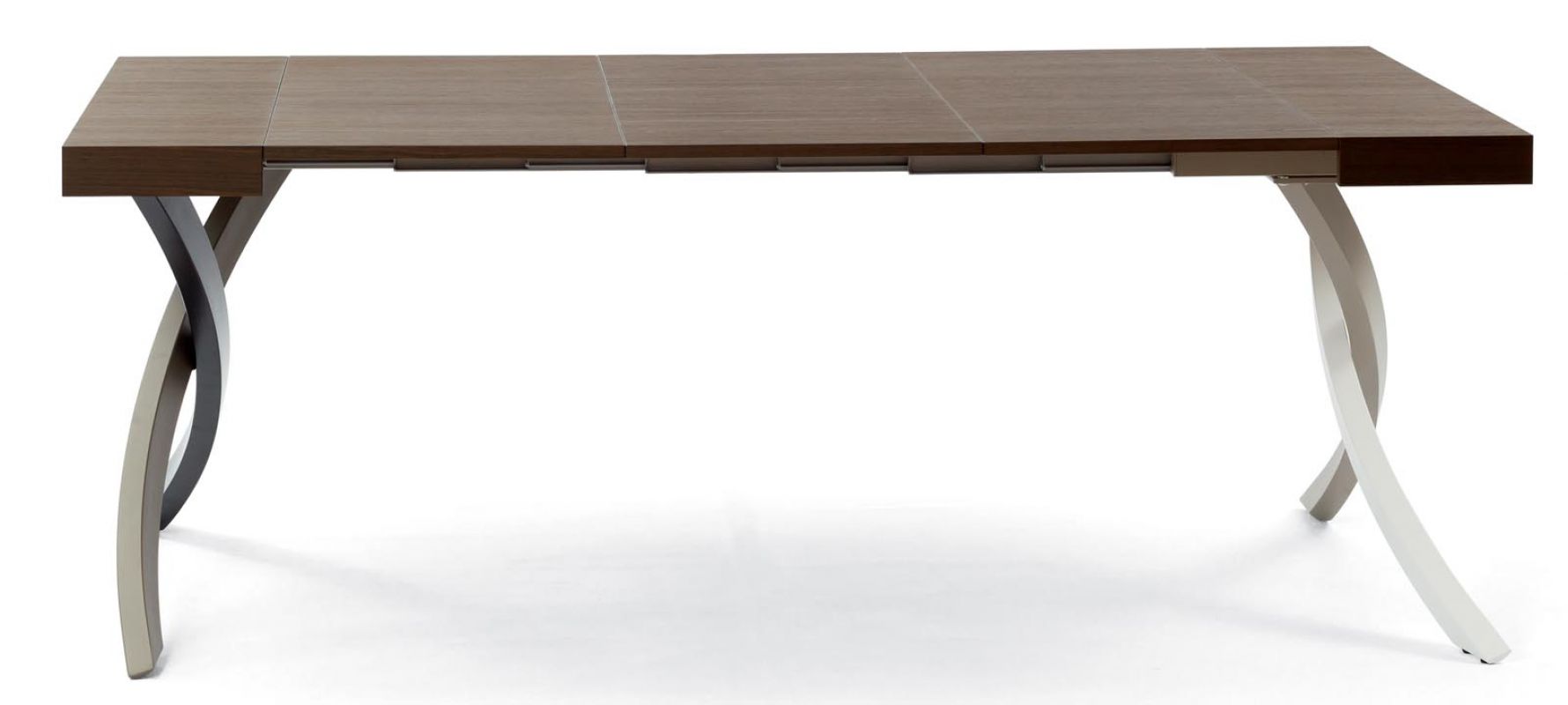 Console with lacquered Metal frame, top and extensions in veneer or lacquered Wood.