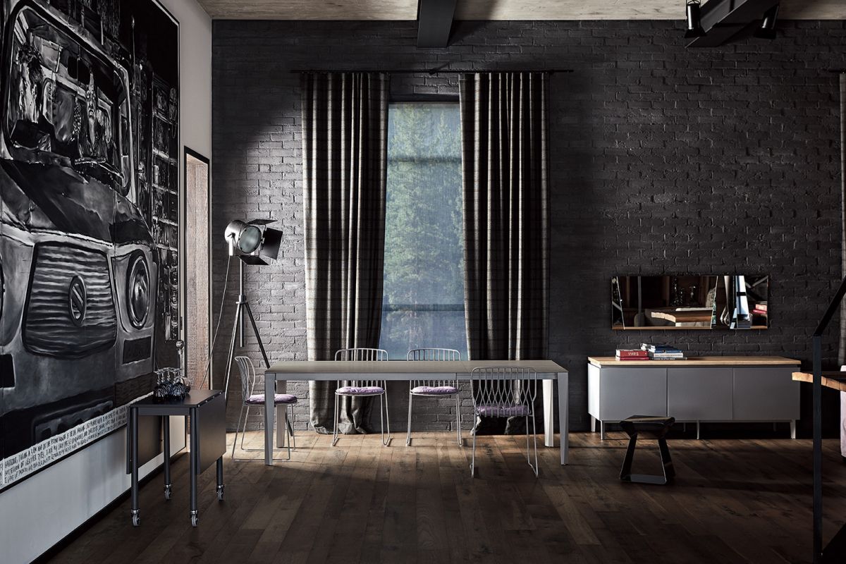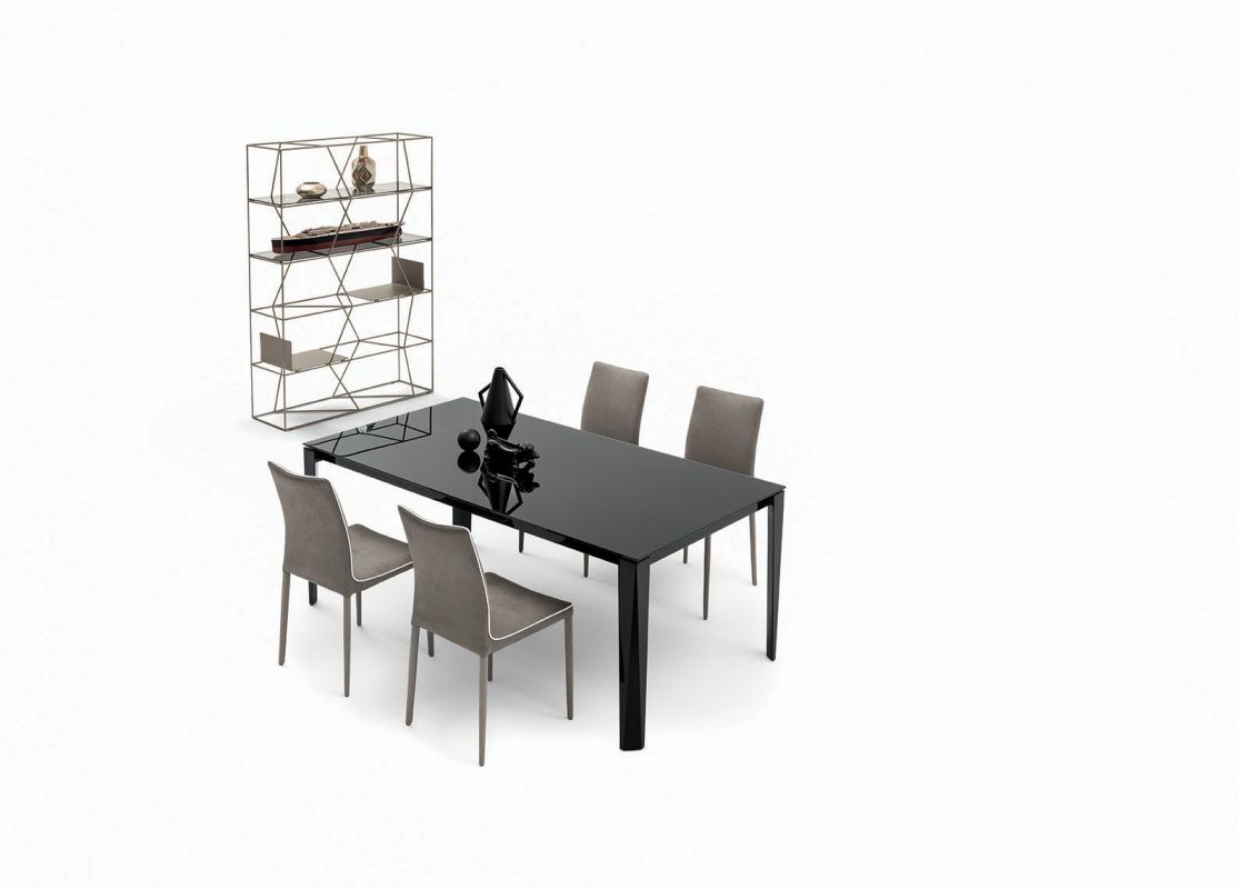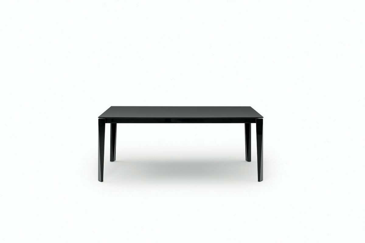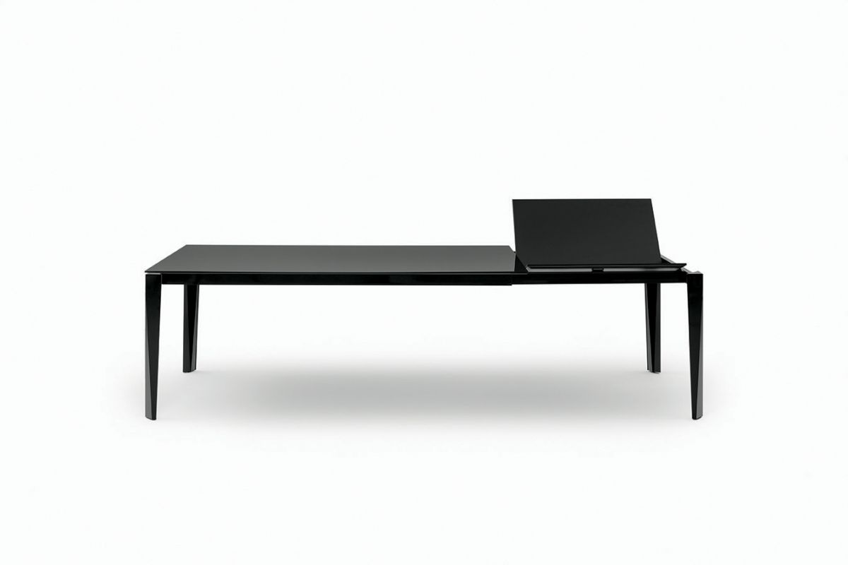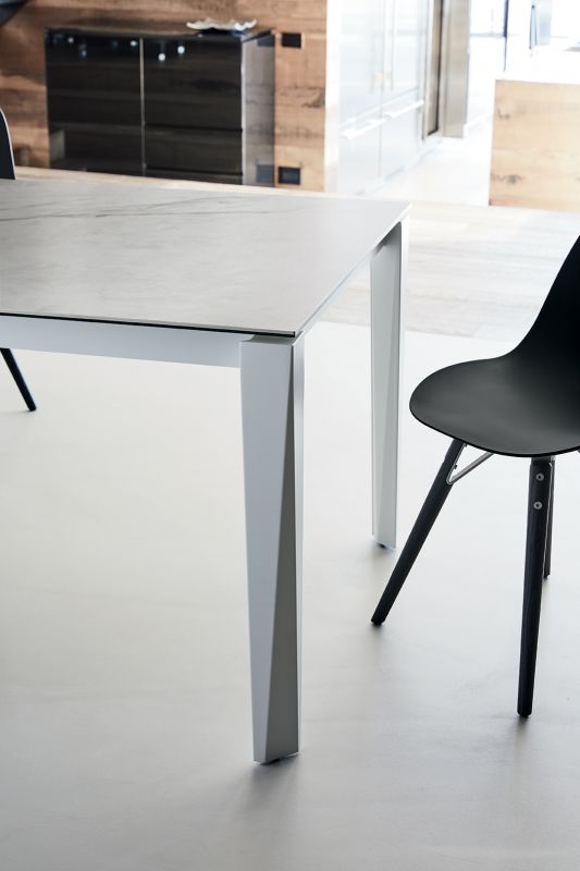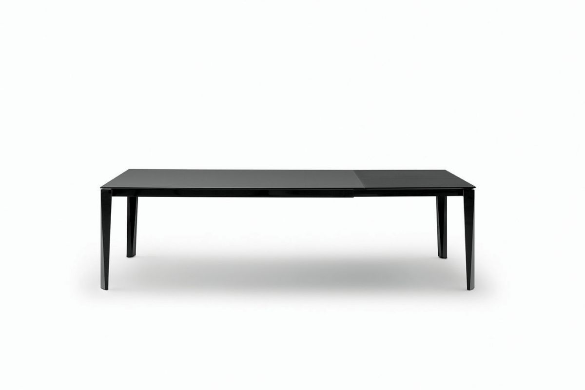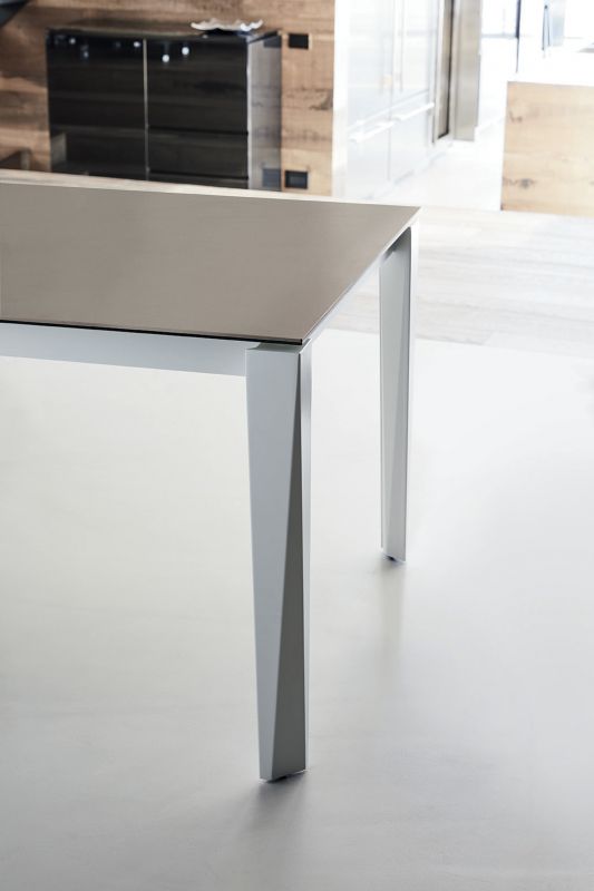 Table with extensions and lacquered metal frame, top and extensions in melamine, laminate Fenix, glossy glass, velvet matt anti-scratch glass, SuperCeramic or SuperMarble