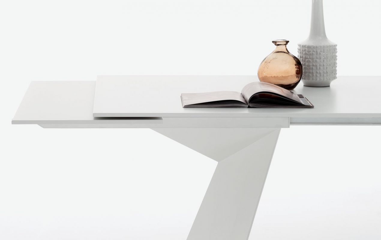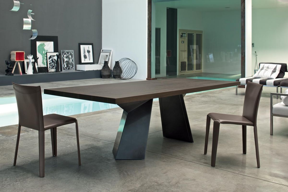 Table fix or with extensions, with lacquered Metal frame. Top in solid Wood, heritage walnut solid Wood, veneer with edge in solid Wood, veneer, glossy Glass, velvet matt Anti-scratch Glass, SuperCeramic, SuperMarble and natural Marble.