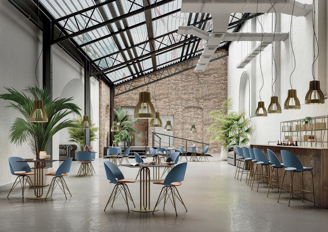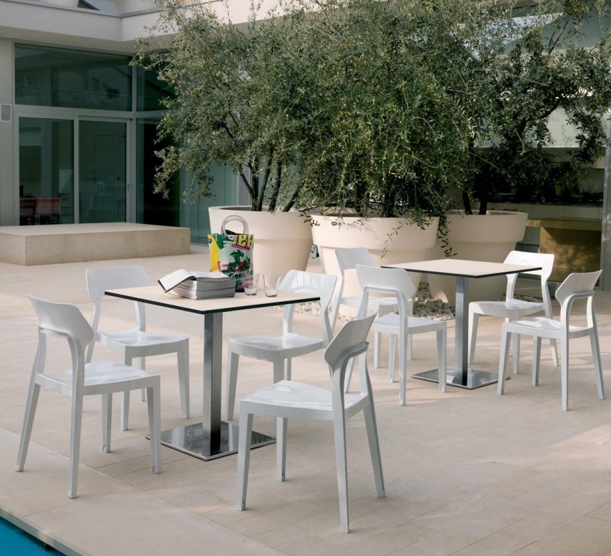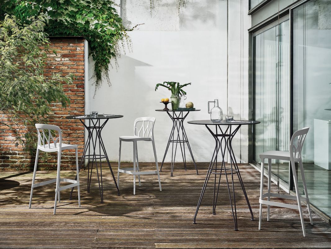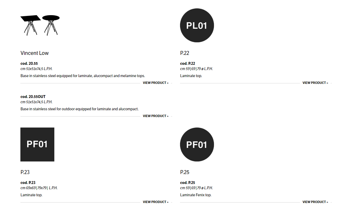 Bases in aluminium for indoor, stainless steel for outdoor and tops in laminate, alucompact or melamine.