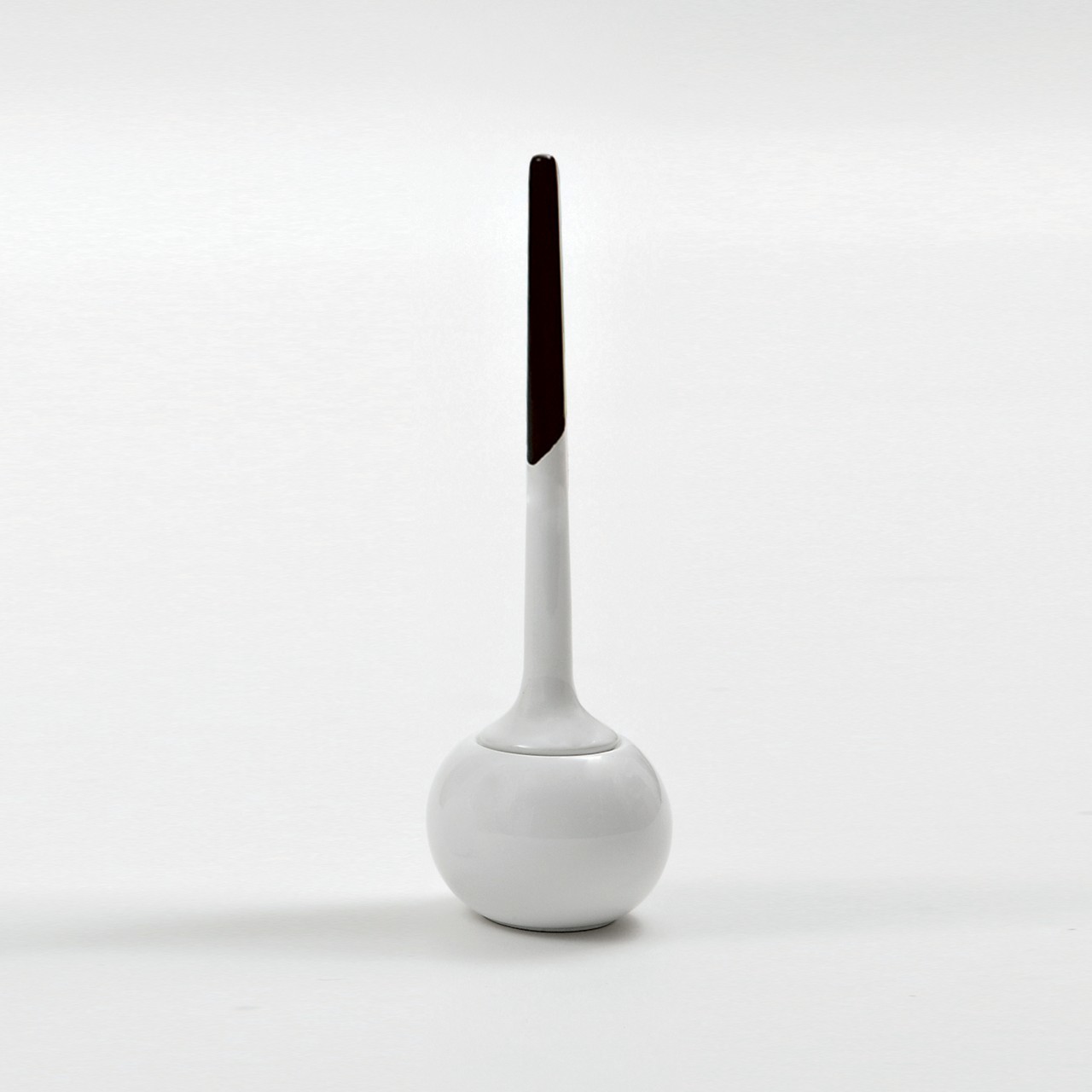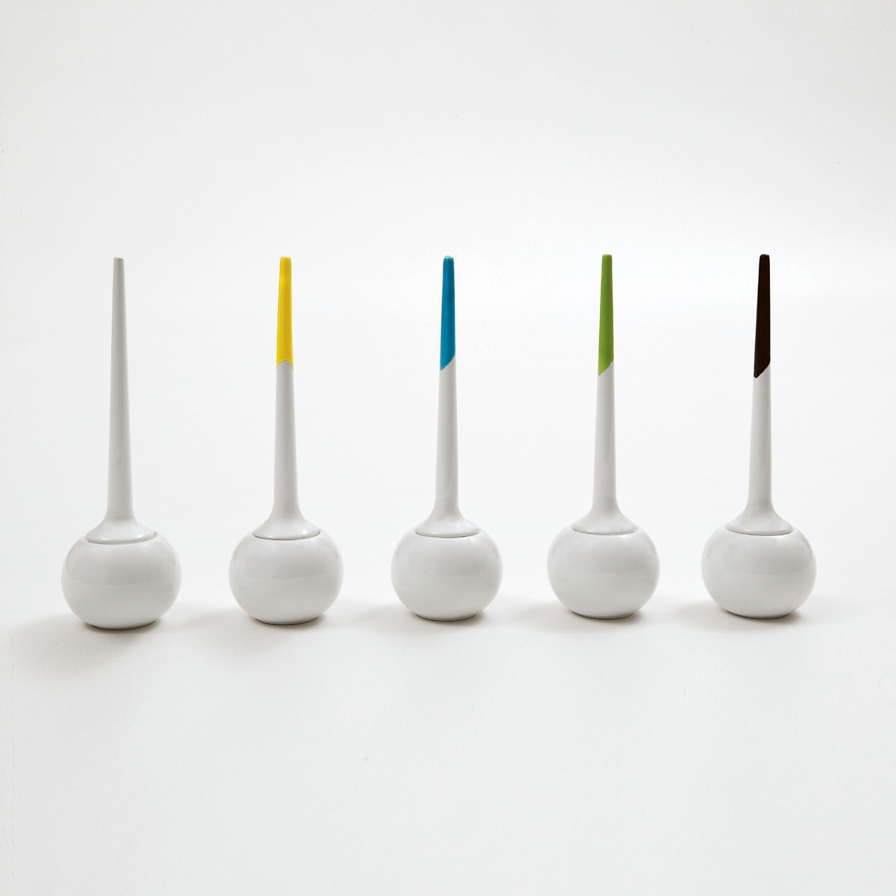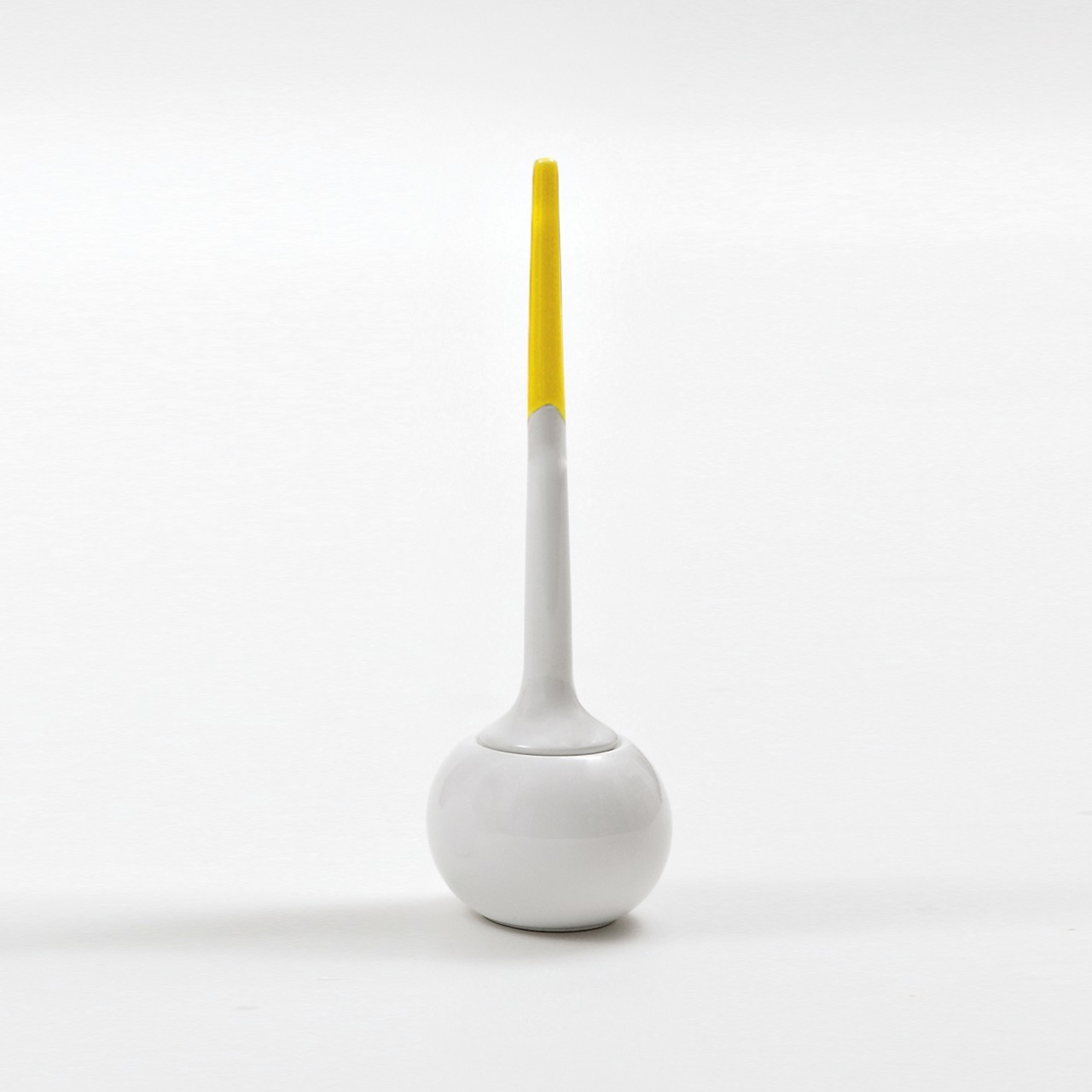 Mielito è un dosatore per il miele in ceramica elegante e pratico, caratterizzato da una nota di colore su fondo bianco che ricorda una traccia lasciata da un anonimo mangiatore di miele.