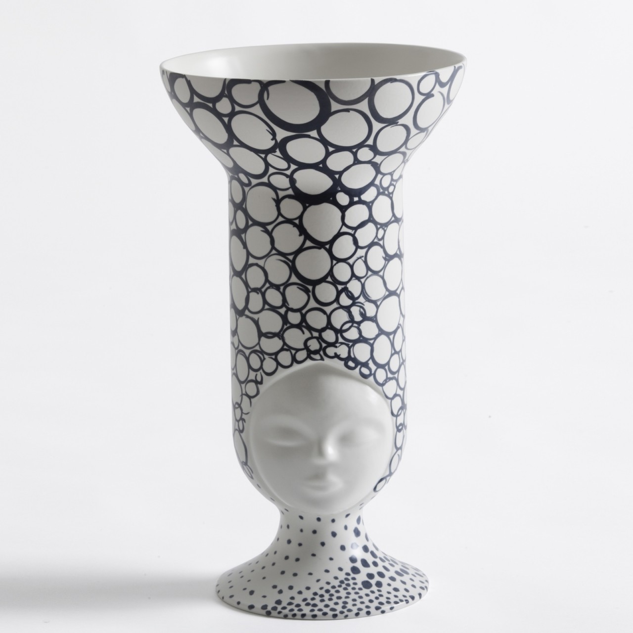 I loro nomi sono Louise, Frida, Sofia, Helen e Clara, sono sorelle. Fantasiose, felici e premurose. A loro piace la bellezza degli spazi puliti e aperti, dove la loro testa piena di armonia e creativit? pu?2 trasmettere luce. Questa ?¨ una collezione di vasi che rende omaggio alle donne di tutte le culture e di tutti i tempi. Le donne sono sempre state il pilastro della casa e questi pezzi mostrano la loro presenza ovunque si trovino. Disponibili nella versione bianco opaco, dipinte a mano in bianco opaco e nero oppure decorate a righe da esperte decoratrici con rame opaco o lucido.