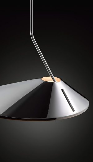 One of the most distinctive signs from Vietnam is the hat used by women in the countryside to protect themselves from the sun and the rain and as a basket to carry food. NóN Lá is the name used to describe this Vietnamese hat and it is also the name we selected for this lamp. This is the way we pay homage to its shape and centenary culture. The simplicity of this cone-shaped lamp, offers a lightweight and resistant structure with an avant-garde touch thanks to the decentralized light cavity. The lamp’s hood is made out of aluminium and then platted or lacquered. The cast iron base of the lamp is angle shaped, which makes it look more rude, in contrast to its subtle cone-shaped shade. Nón Lá fills the space with direct bottom light and includes a polycarbonate diffuser which hosts a dimming own-made led plate.