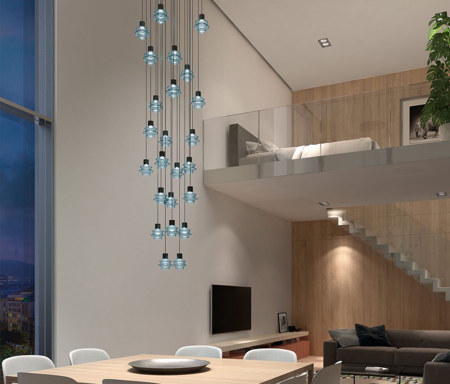 Drop and Drip's small screen is made of borosilicate glass, finer and more delicate than blown glass. "I wanted the material to be very tasteful, almost like a candy," says Christophe. The choice of glass is intimately related to the light that creates. In the words of its creator: "I was looking for a very bright light, and the translucent glass and its shape contribute to it. The light source is an LED that is hidden so that light is the only protagonist. Then, when the light is projected and reflected in the materials that are found along the way, it creates a set of sparkles and shadows. All that, enrich the object. " Its light is intimate, but it also has a practical utility for those who are nearby. "I always bear in mind the space where a lamp is going to be located because that is where it becomes meaningful" explains Christophe. The Drop and the Drip are intended for application in both residential and contract projects. Thanks to its multiple applications it works very well in all hotel spaces, in public areas as well as in rooms.