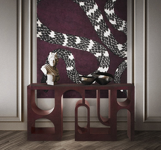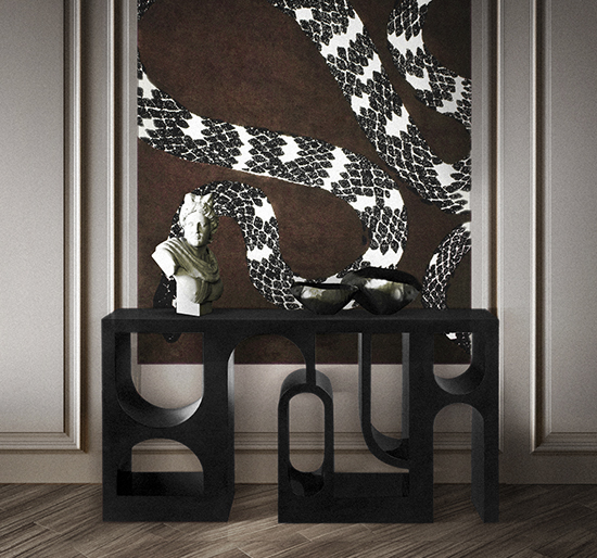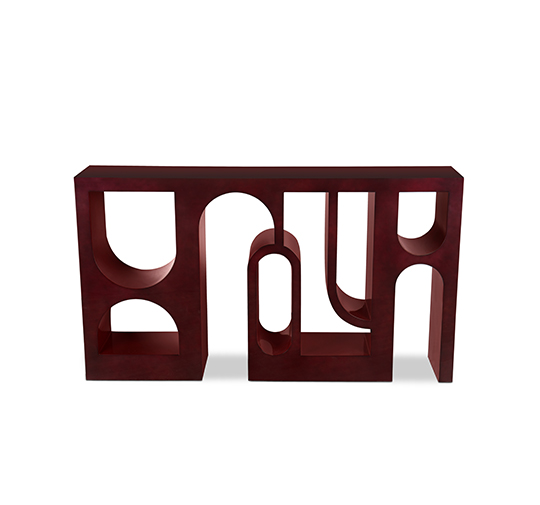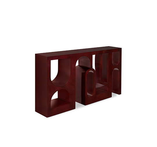 The Roman Colosseum or Coliseum is one of the new Seven Wonders of the World. Inspired by its empowering presence, COLOSSEUM Console Table was created. Made with red lacquer with translucent black with gloss varnish, this modern red console table will help you bring the most enduring icon of Italy to any home decot.