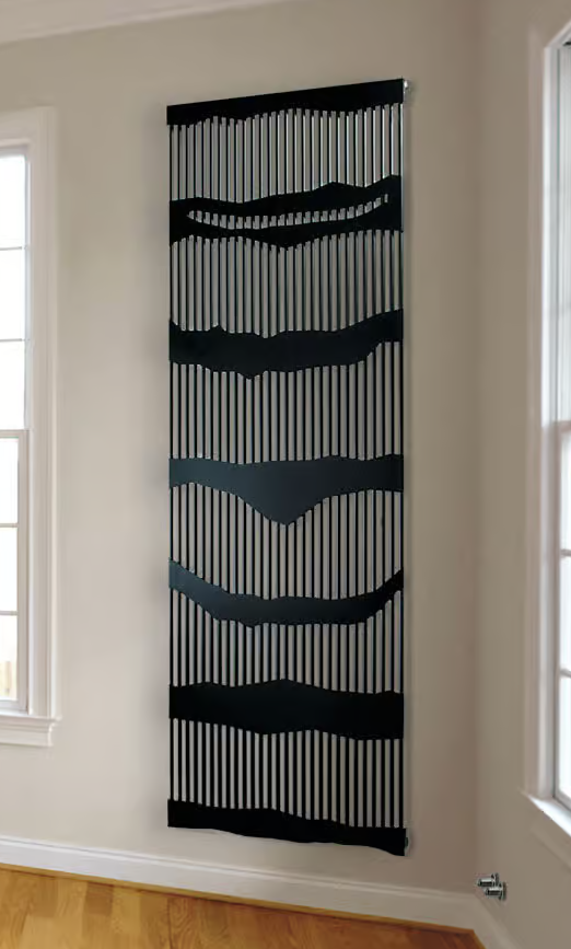 Here too Rino Carrara uses the graphic themes typical of his work, adding them to typical radiator shapes and materials, where they merge to form a special feature.