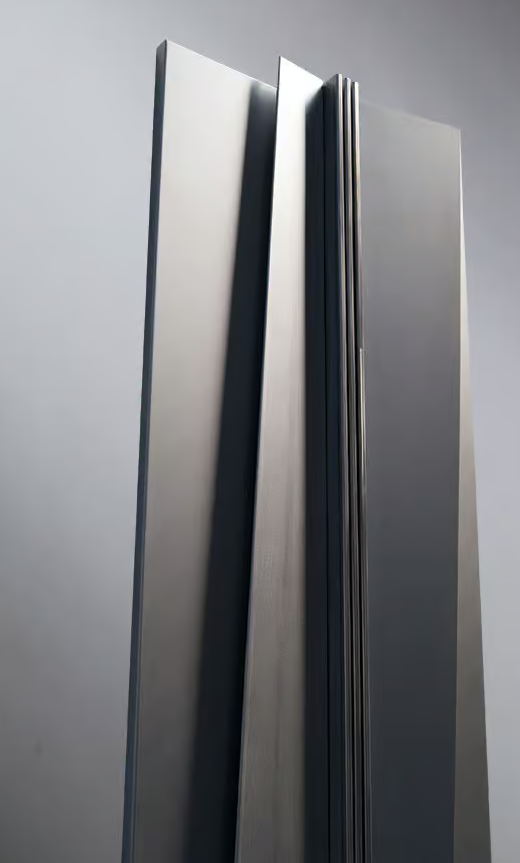 Brushed-metal finish BR 0031 and semi-bright varnish.