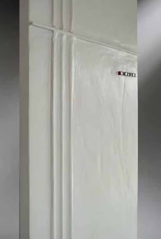 Sablé White SB9016 finish, parallelepiped in relief grey and red color. Other sablè colors Brem without supplement.