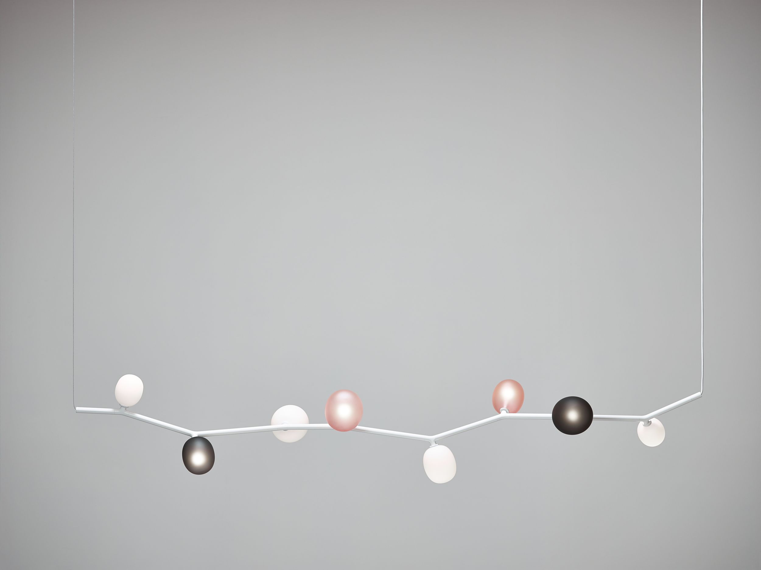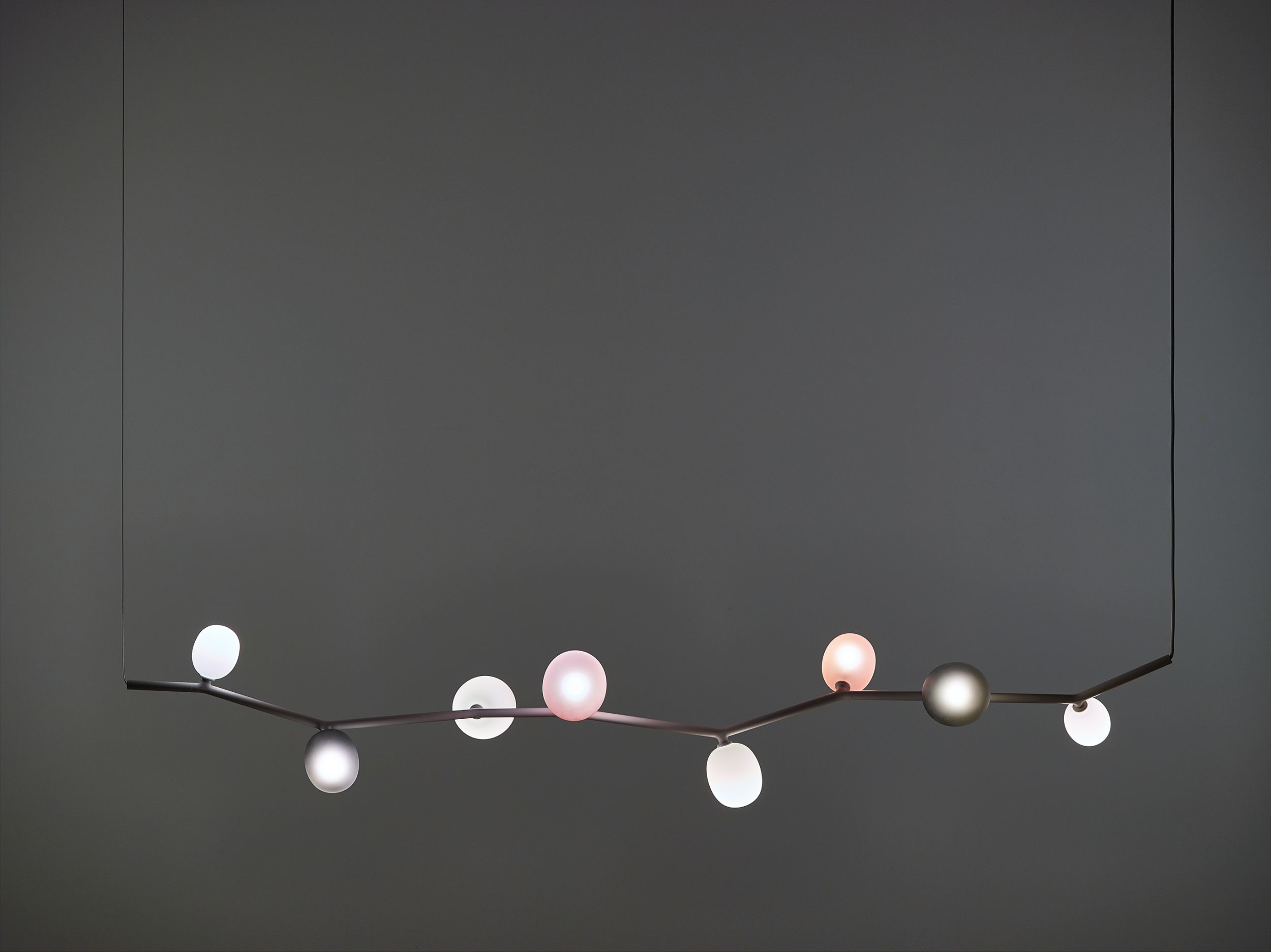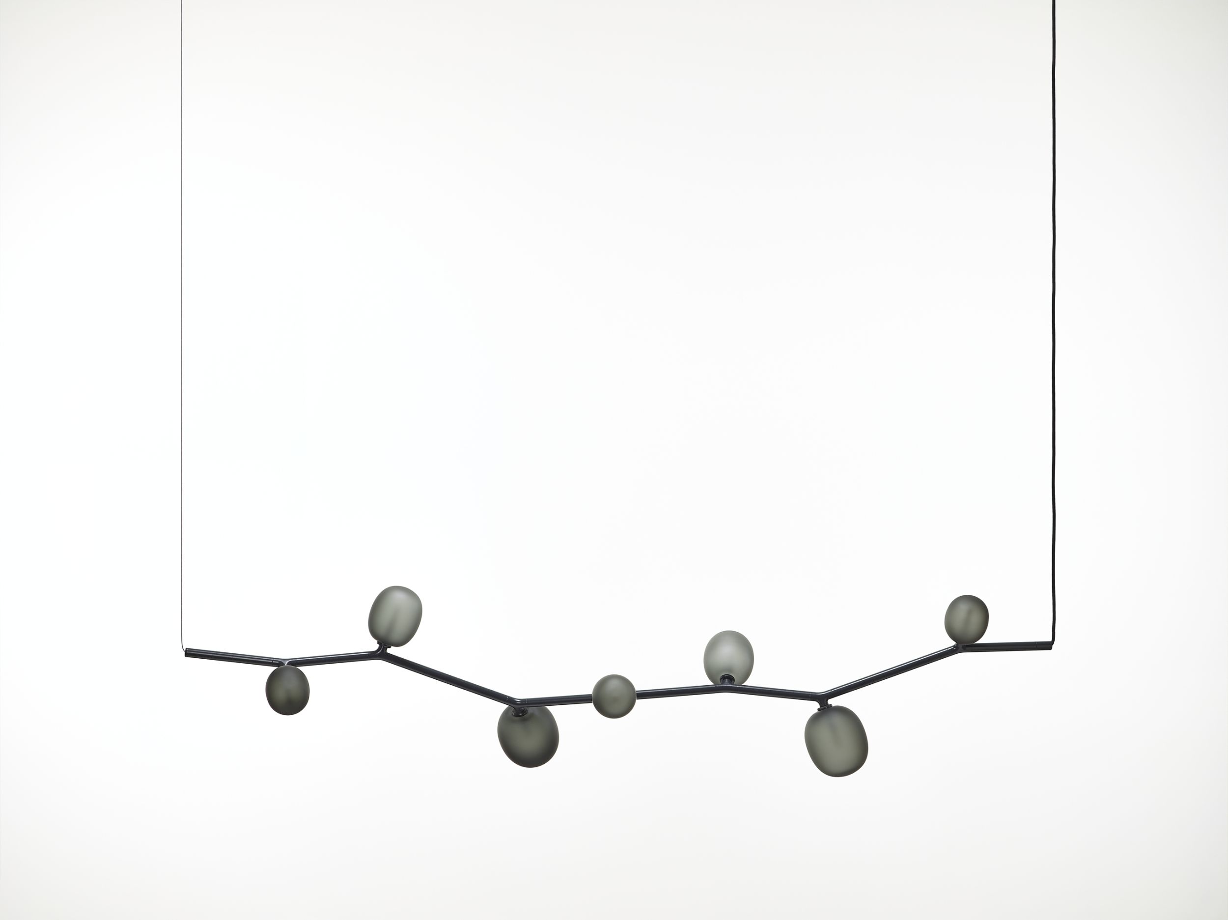 The collection features three sizes in opal or smoke glass. Variable, elegant, and precise in workmanship all the way down to the smallest detail, IVY is a high-tech lighting concept well suited to both commercial and residential applications. In intimate home settings, for example, a single elegant branch can be used, or multiple branches can be joined together to create a curtain of light. IVY has many forms and justly takes its place among artistic, so-called bespoke, lighting installations.