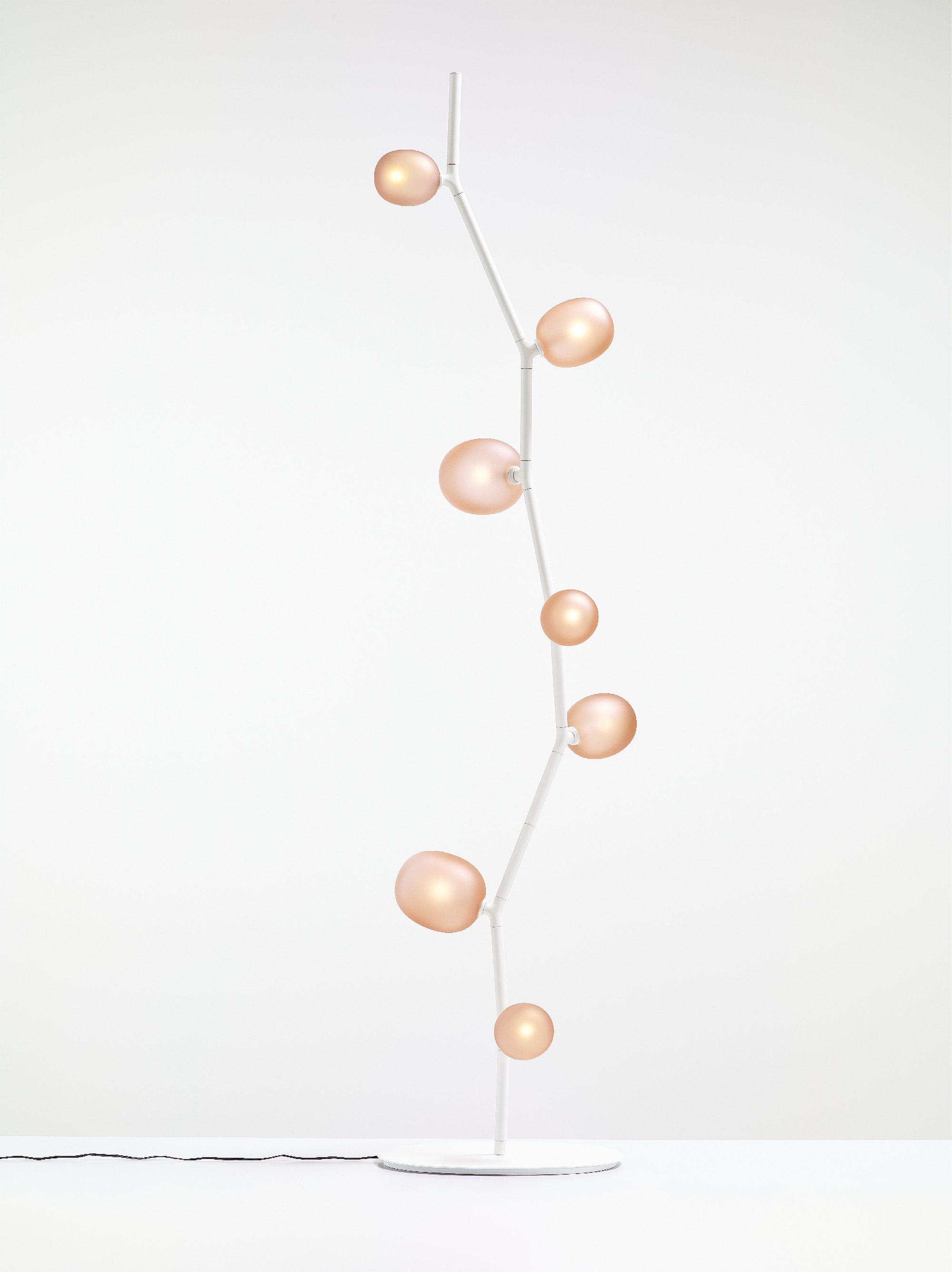 The collection features three sizes in opal or smoke glass. Variable, elegant, and precise in workmanship all the way down to the smallest detail, IVY is a high-tech lighting concept well suited to both commercial and residential applications. In intimate home settings, for example, a single elegant branch can be used, or multiple branches can be joined together to create a curtain of light. IVY has many forms and justly takes its place among artistic, so-called bespoke, lighting installations.