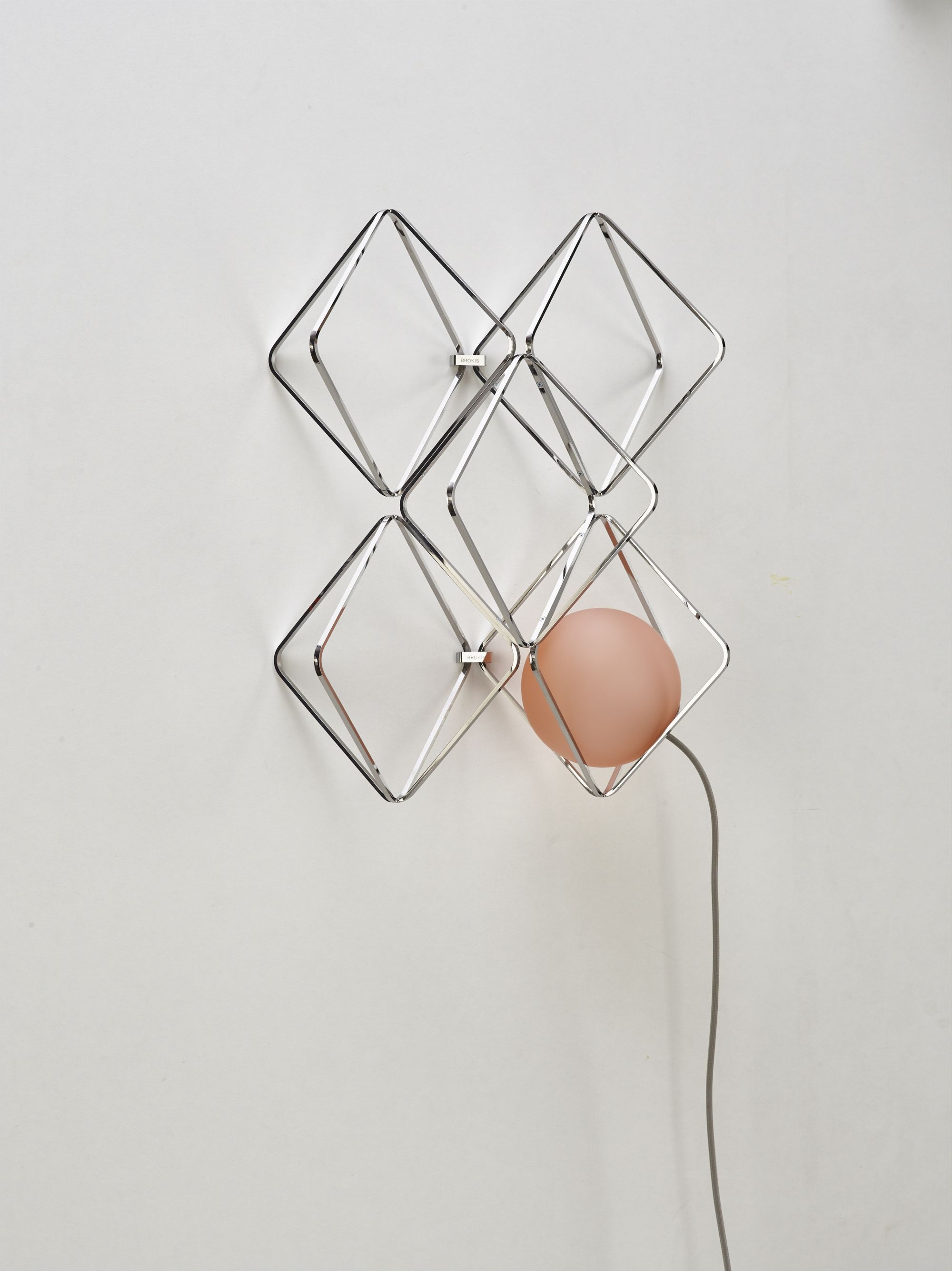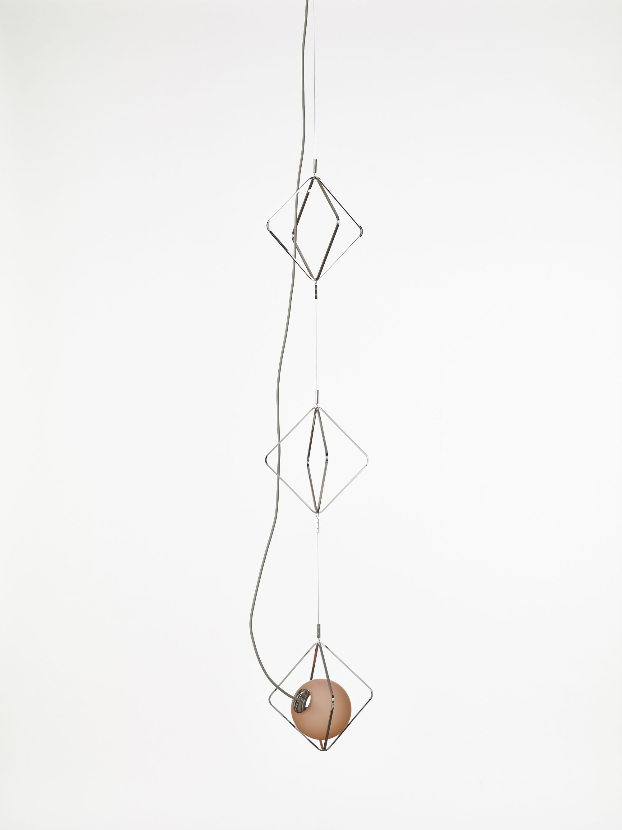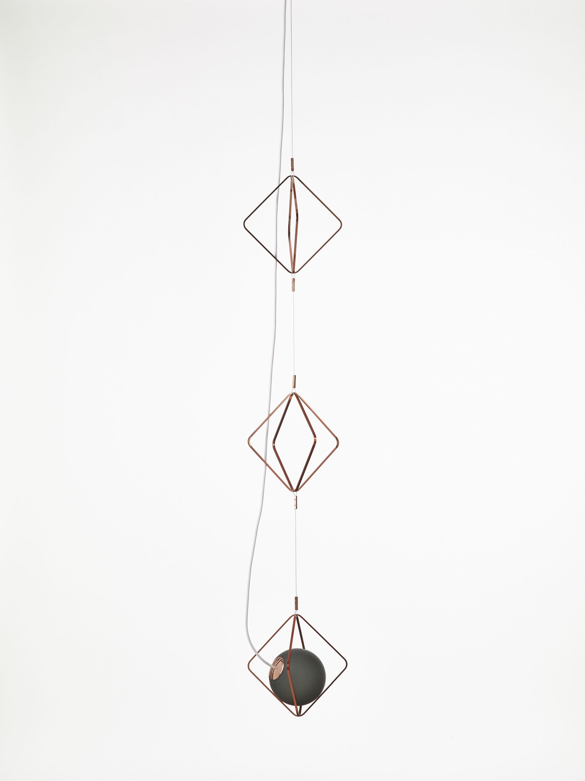 The Jack O’Lantern Table is available in two sizes and its Small version comes in size of 325 x 260 mm. This subtle and geometrically balanced light offers a wide variety of combinations. It can be hung separately or in vertical lighting arrangements. In addition to the suspension variant, there is also a wall composition comprising five frames joined in a single module for up to five glass spheres, which rely on nothing more than gravity to stay in place.