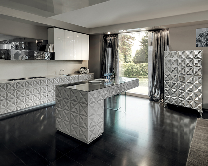 La storica collezione che ha reso celebre il marchio con le sue forme geometriche e superfici sfaccettate. Suggestivi effetti di movimento in un gioco percettivo ad effetto trompe l’oeil che cambia in funzione della luce, in un continuo alternarsi di luci ed ombre.