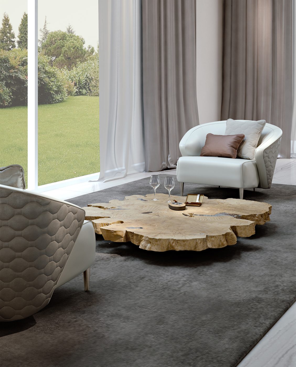 Linee sinuose, avvolgenti, volumi arrotondati in cui la forma curvilinea é al centro: nasce così la nuova collezione di imbottiti Wave ispirata all’onda calma del mare. Morbide pelli e tessuti raffinati rivestono gli arredi.