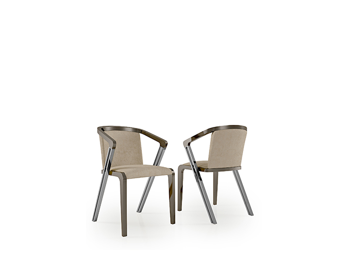 La preziosità degli arredi é accentuata dai riflessi dell’acciaio e dell’oro delle strutture, in perfetta sintonia con gli inserti dell’elegante “Rosa” del marchio Bizzotto Italia elegante dettaglio stilistico senza tempo.