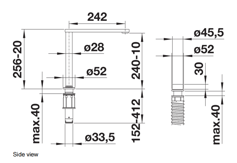 Only 3 cm min. distance between sink and window aisle