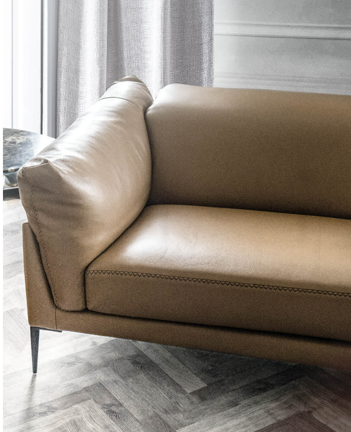 La bellezza di Elisir nasce dal contrasto: le forme morbide che caratterizzano il divano si posano su piedini a spillo sottili e rigorosi, mentre una particolare cucitura decorativa ripercorre la linea del modello esaltandone il design. Elisir è un divano che si lascia ammirare ma nasconde un segreto che lo rende unico: un meccanismo posto all’interno della spalliera permette di aumentarne l’altezza, per trasformare la sua eleganza in un’esperienza di comfort.
