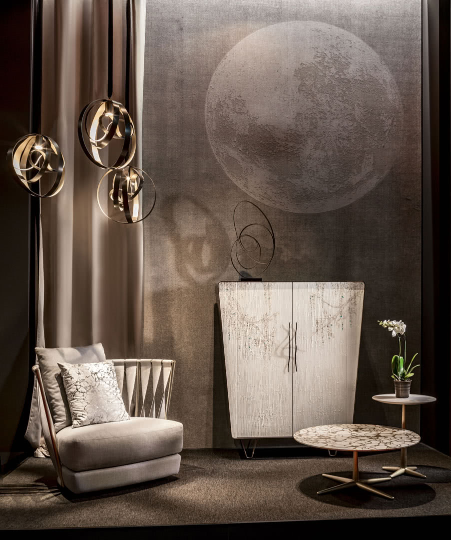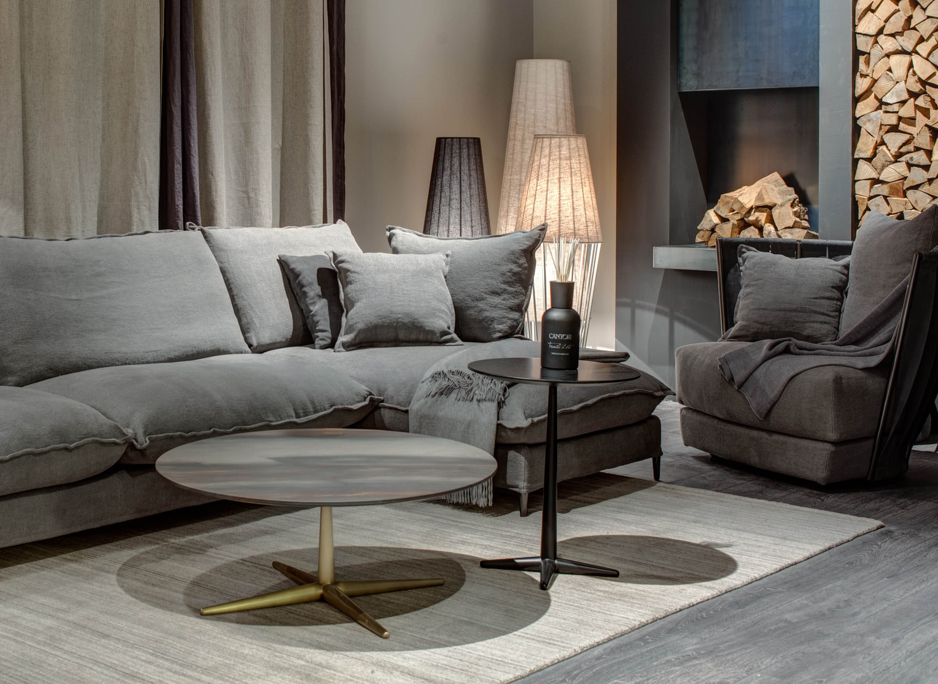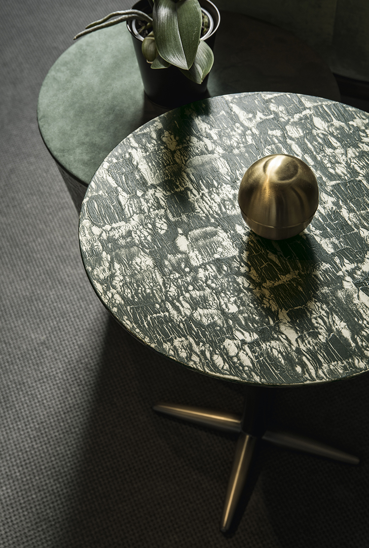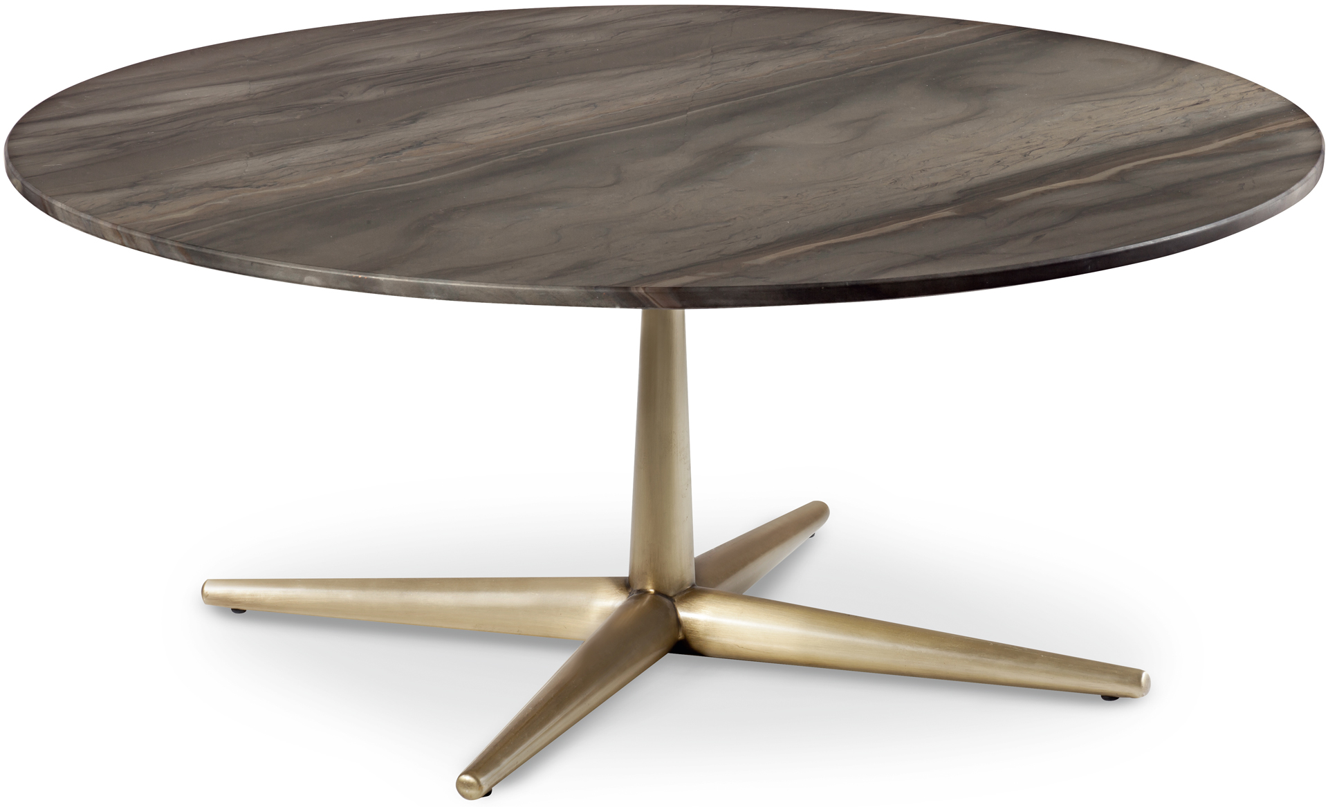 Il piede centrale è realizzato in metallo conificato a freddo e finito a bagno di galvanica, in ottone o oro; il piano è disponibile in legno impiallacciato spazzolato a poro aperto, in marmo, in pietra o decorato per esaltarne la sua natura vintage. Il tavolino City rotondo è perfetto come tavolino da fumo in salotto.