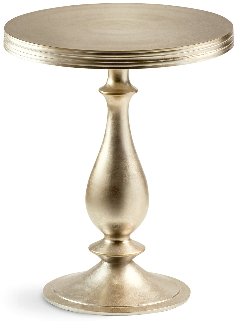 La struttura e il top, in fusione di alluminio, sono decorati e patinati completamente a mano in foglia argento champagne o in madreperla. Il tavolino Grey è perfetto per il salotto come tavolino lato sofà o per la camera da letto come comodino.