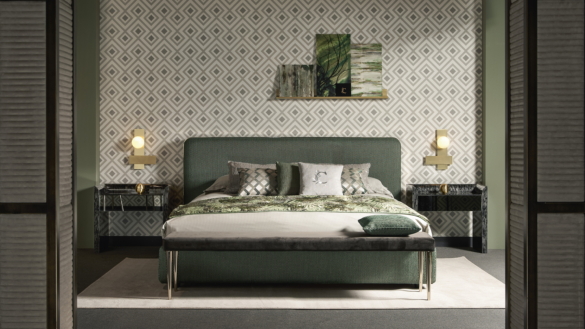 Gli spigoli arrotondati e la cornice sono realizzati in alluminio pieno curvato; la testata e il giroletto sono imbottiti e rivestiti, o impunturati se in pelle, anche in tessuto/pelle fornito dal cliente (il giroletto è sfoderabile). Il letto Elvis, con la sua matrice “streamline” dona un carattere unico alla camera da letto moderna; è disponibile in varie dimensioni per reti da cm: 160x200 (letto matrimoniale), 180x200 (letto matrimoniale) e 200x200 (letto king size) anche nella versione con box contenitore.