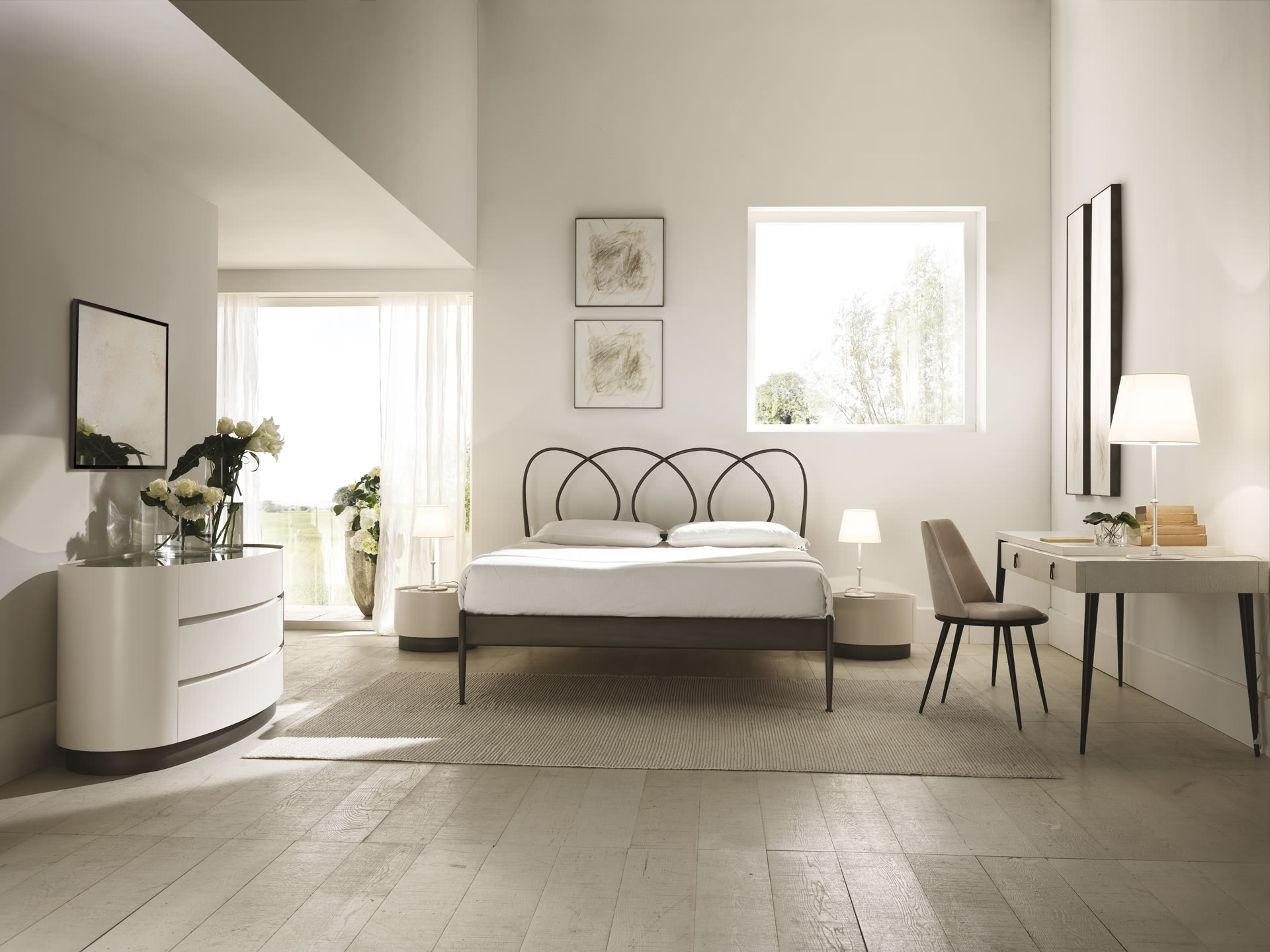 Letto matrimoniale moderno Helios in metallo.