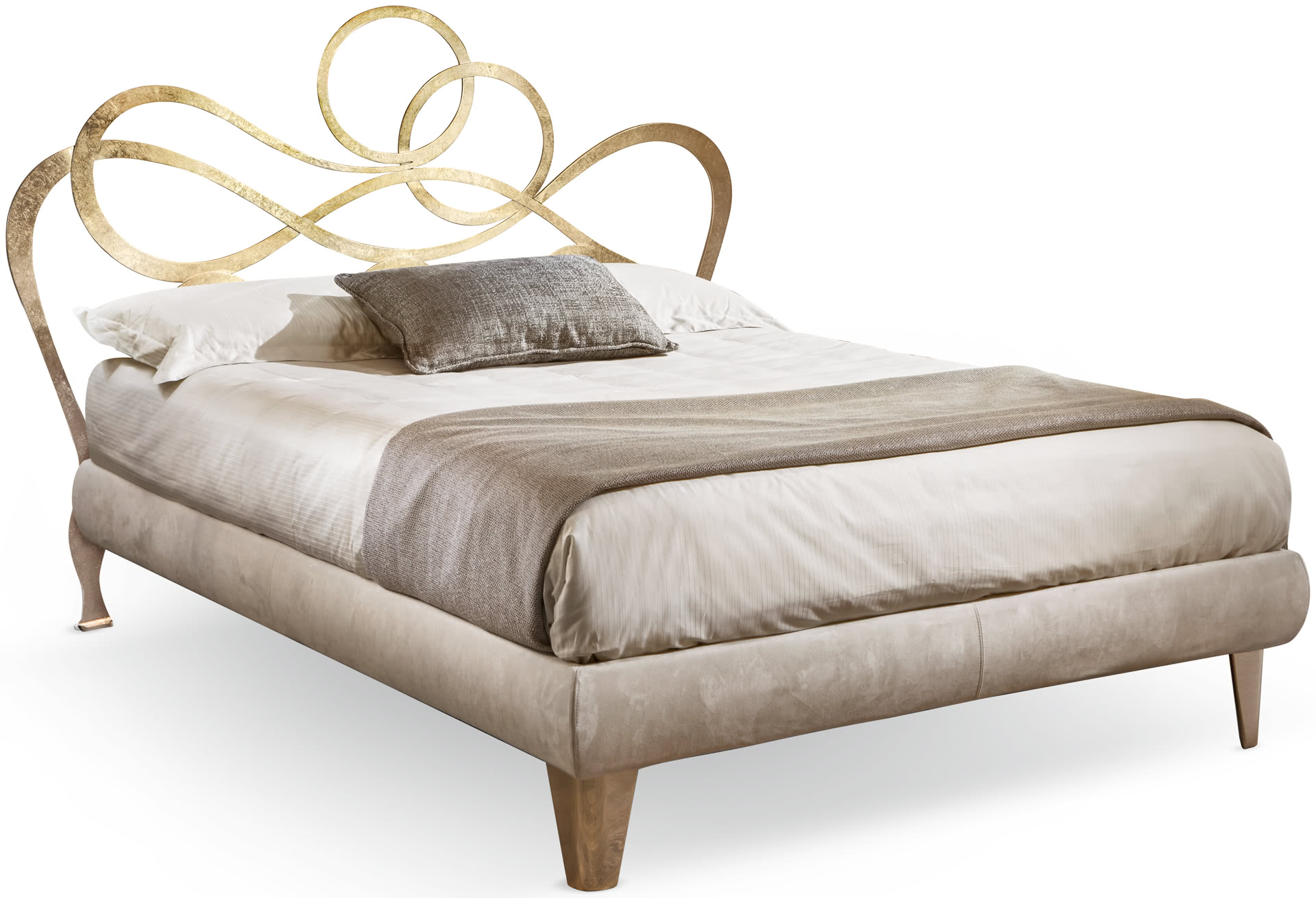 Letto matrimoniale classico J’adore imbottito in ferro battuto con giroletto imbottito.