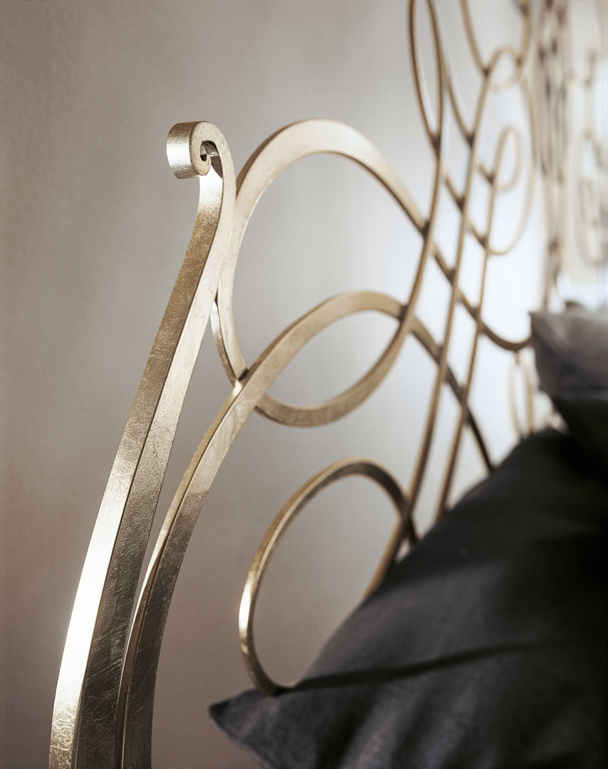 La struttura è in metallo, tagliato a laser, completamente levigata, lucidata e finita a mano in foglia argento champagne o laccata. Il letto Pascià è perfetto per una camera da letto eclettica; è disponibile in varie dimensioni, con o senza pediera, per reti da cm: 160x200 (letto matrimoniale), 180x200 (letto matrimoniale, solo per la versione senza pediera) e 200x200 (letto king size, solo per la versione senza pediera) anche nella versione con box contenitore. Su richiesta, il letto Pascià è disponibile anche fuori misura per materassi di lunghezza cm 210, 220, 230 o altre dimensioni richieste dal cliente; un letto più lungo per offrire il massimo comfort anche a persone molto alte.